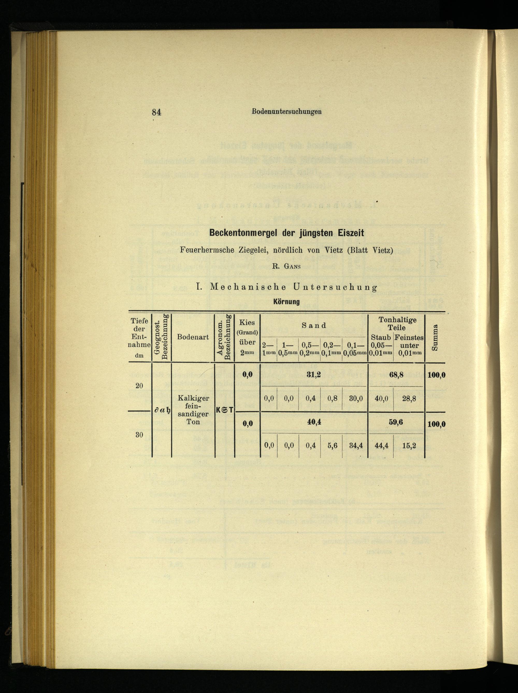 Beckentonmergel der jüngsten Eiszeit Feuerhermsche Ziegelei, nördlich von Vietz(Blatt Vietz) R. GAns