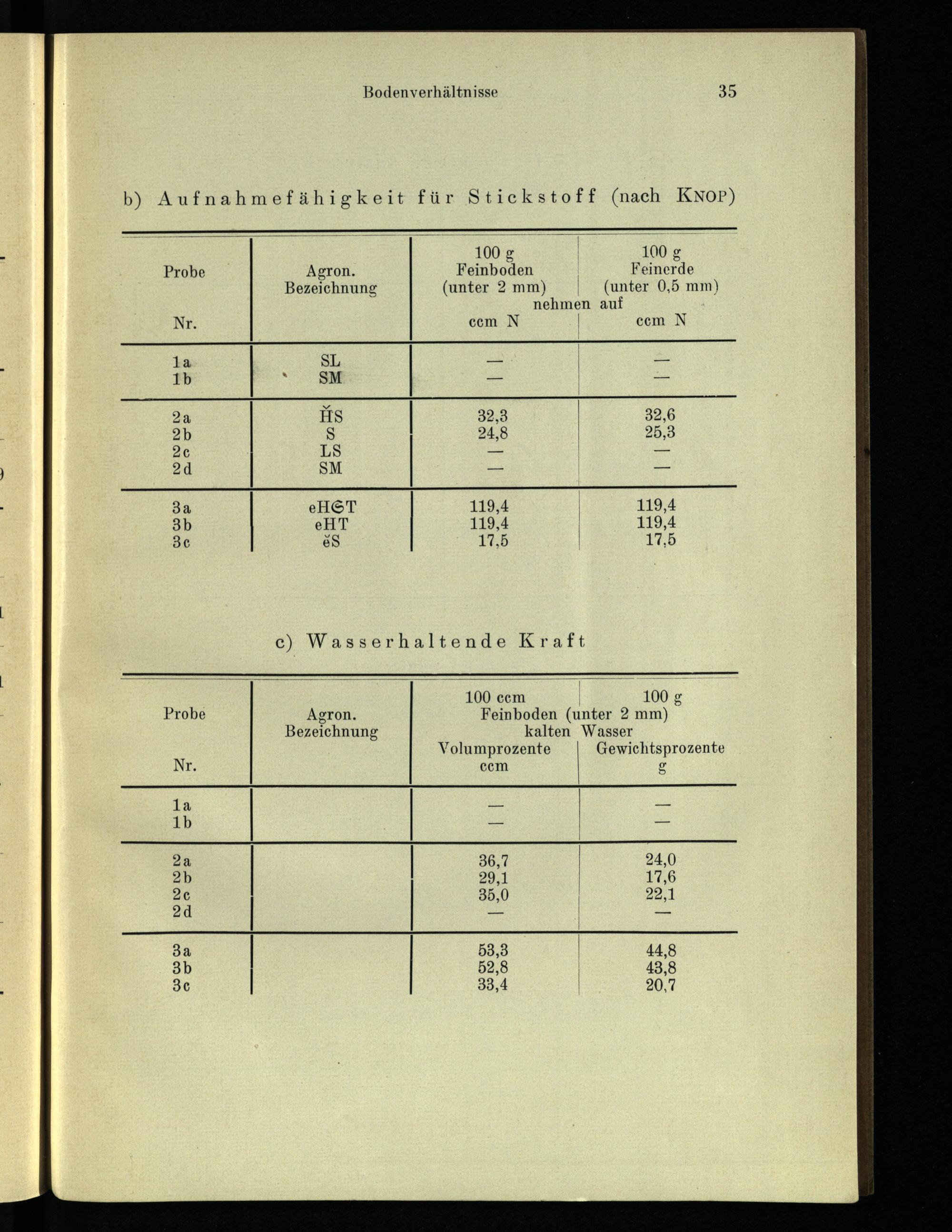 b) Aufnahmefähigkeit für Stickstoff (nach KNOP)