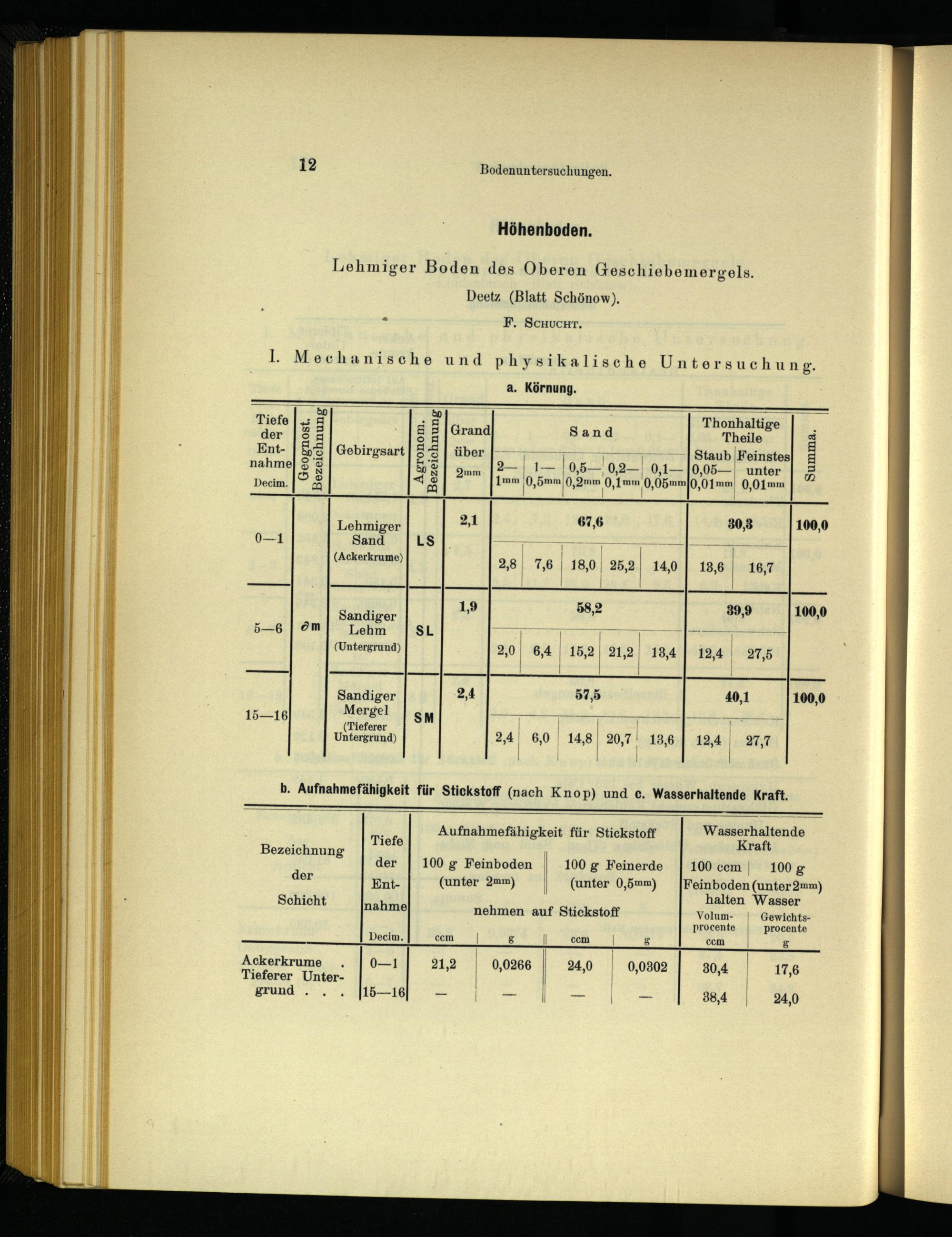 b. Aufnahmefähigkeit für Stickstoff(nach Knop) und c. Wasserhaltende Kraft.