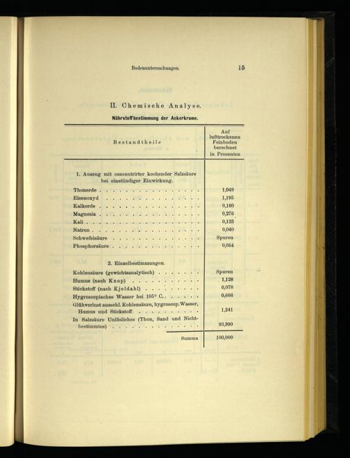 Kohlensäure(gewichtsanalytisch)....++ Spuren Humus(nach Knop)..... 0.0.0444 1,128 Stickstoff(nach Kjeldahl)....-++. 0,078 Hygroscopisches Wasser bei 105° C.. 0,666