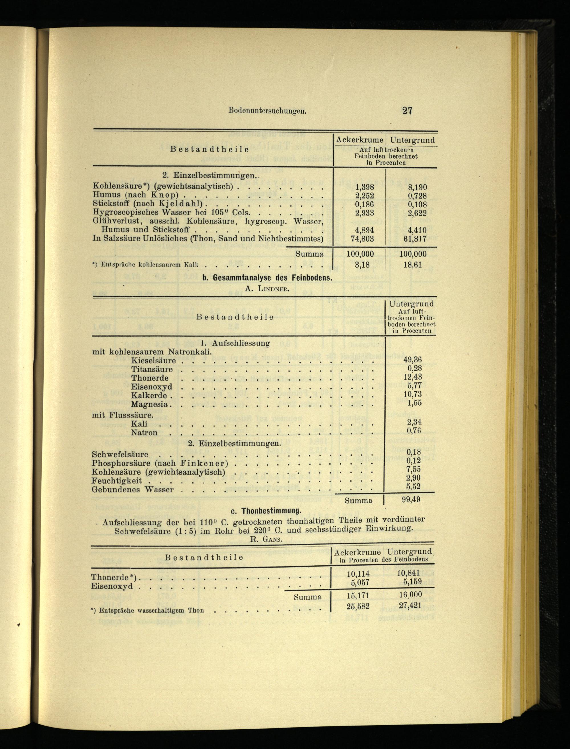 b. Gesammtanalyse des Feinbodens, A. LINDNER.