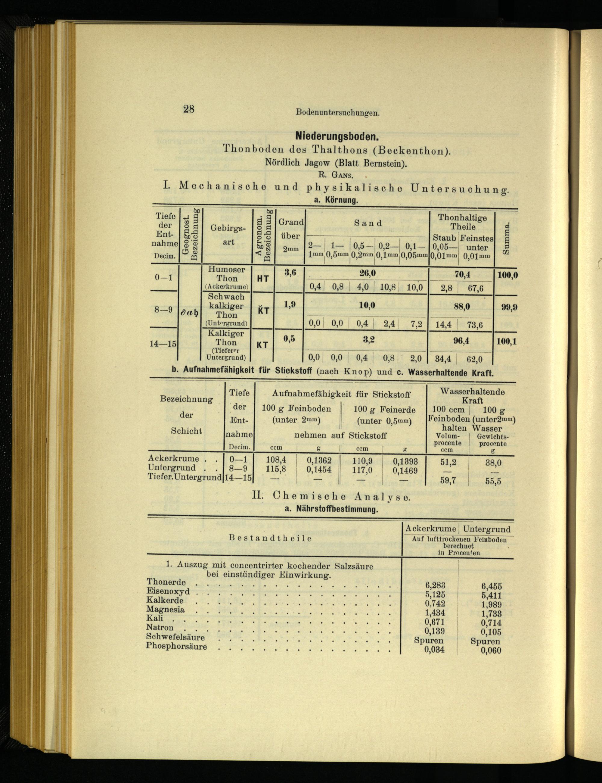 Niederungsboden. Thonboden des Thalthons(Beckenthon). Nördlich Jagow(Blatt Bernstein). R. Gans, I. Mechanische und physikalische Untersuchung. a. Körnung.