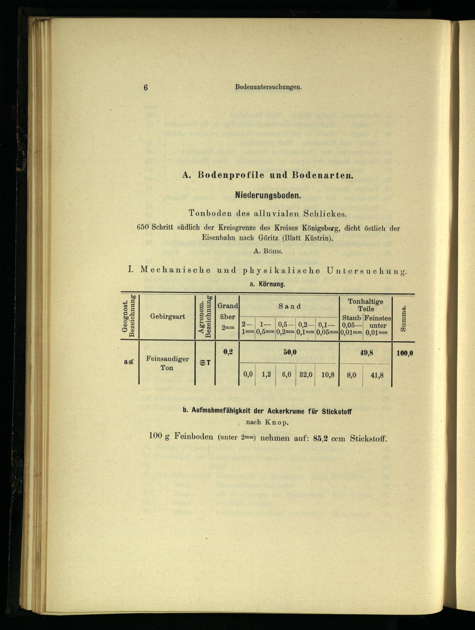 100 g Feinboden(unter 2mm) nehmen auf: 85,2 ccm Stickstoff.
