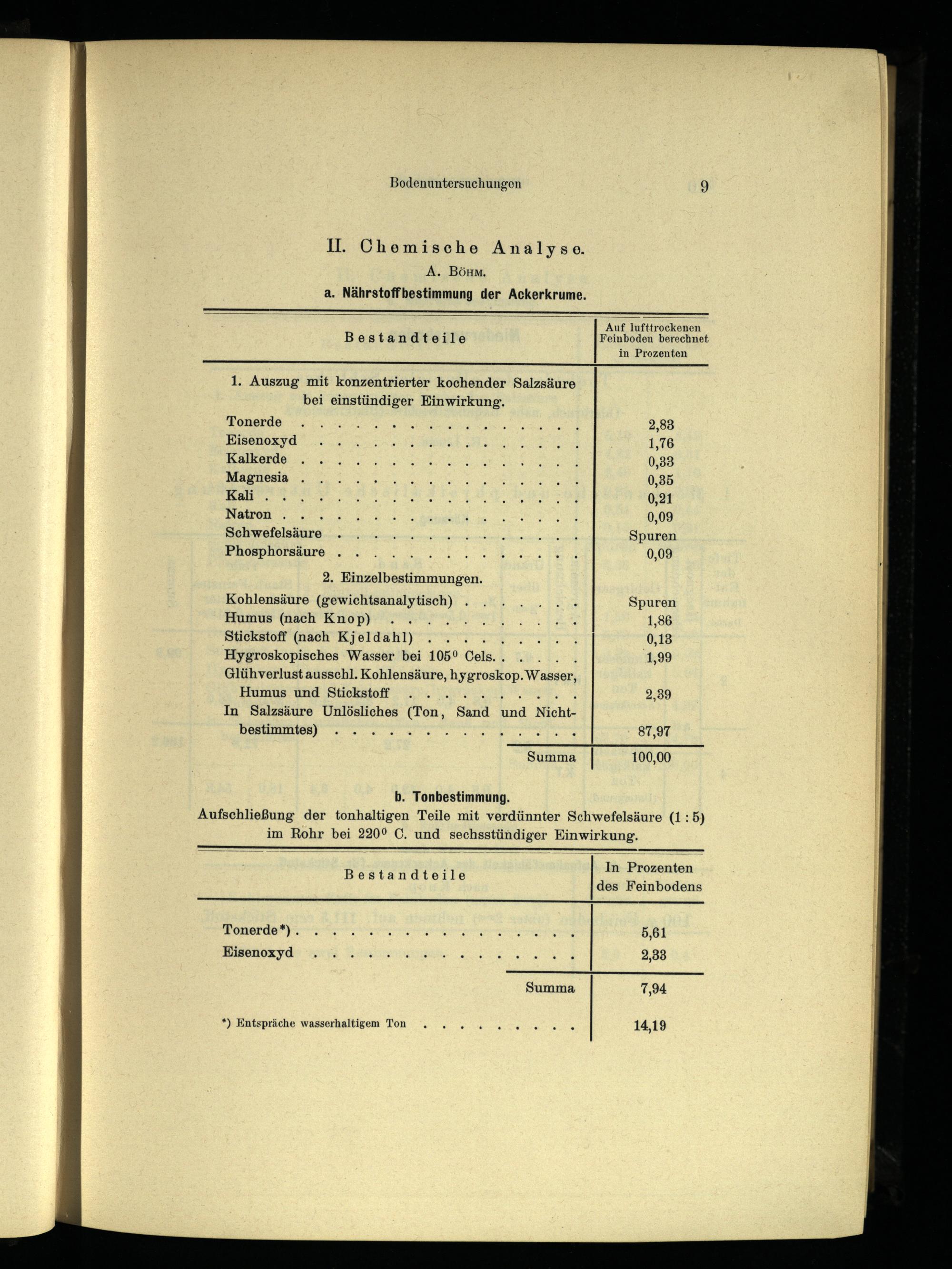 I. Chemische Analyse. A. Bönm. a. Nährstoffbestimmung der Ackerkrume.