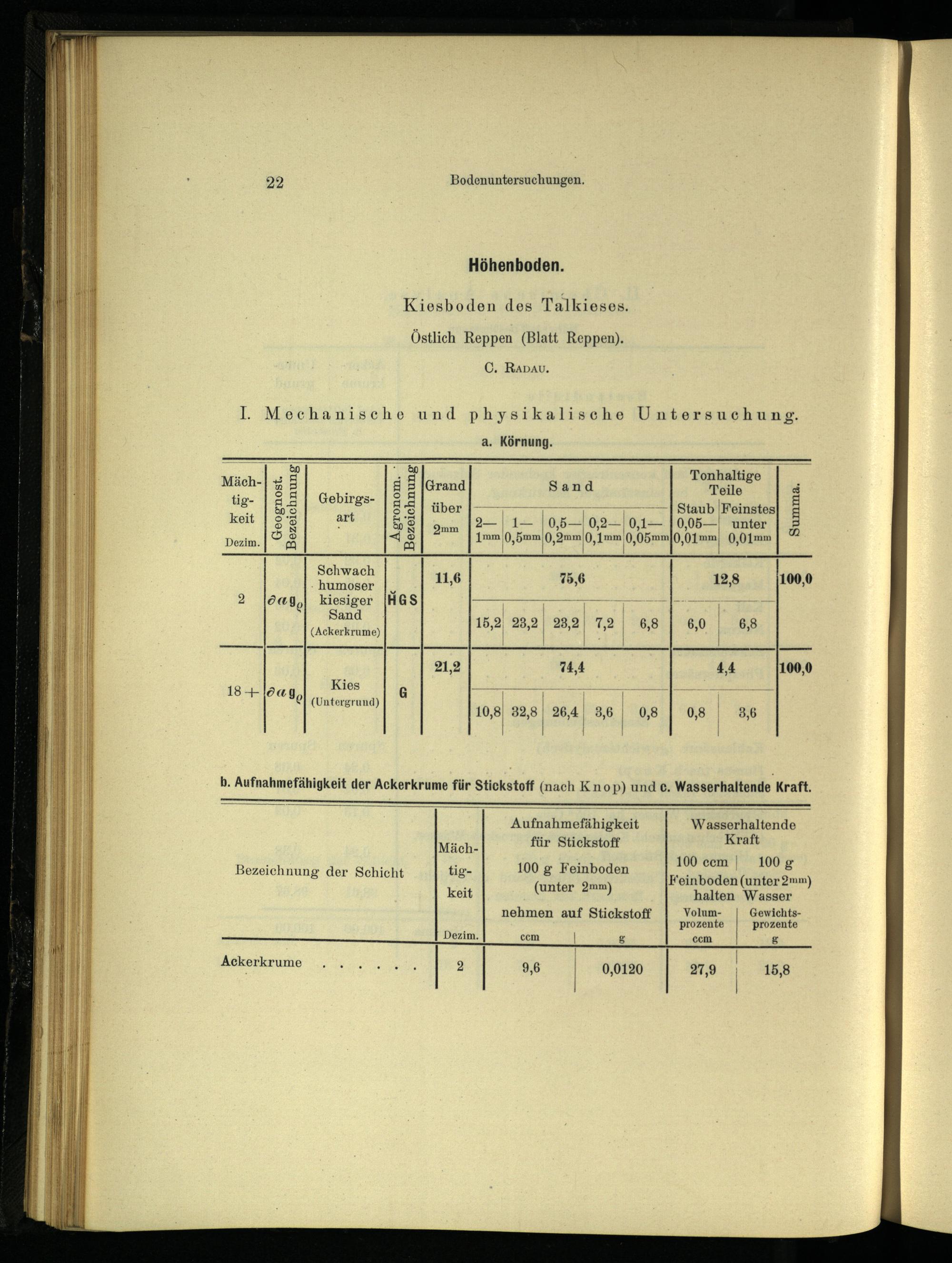 b. Aufnahmefähigkeit der Ackerkrume für Stickstoff(nach Knop) und€. Wasserhaltende Kraft.