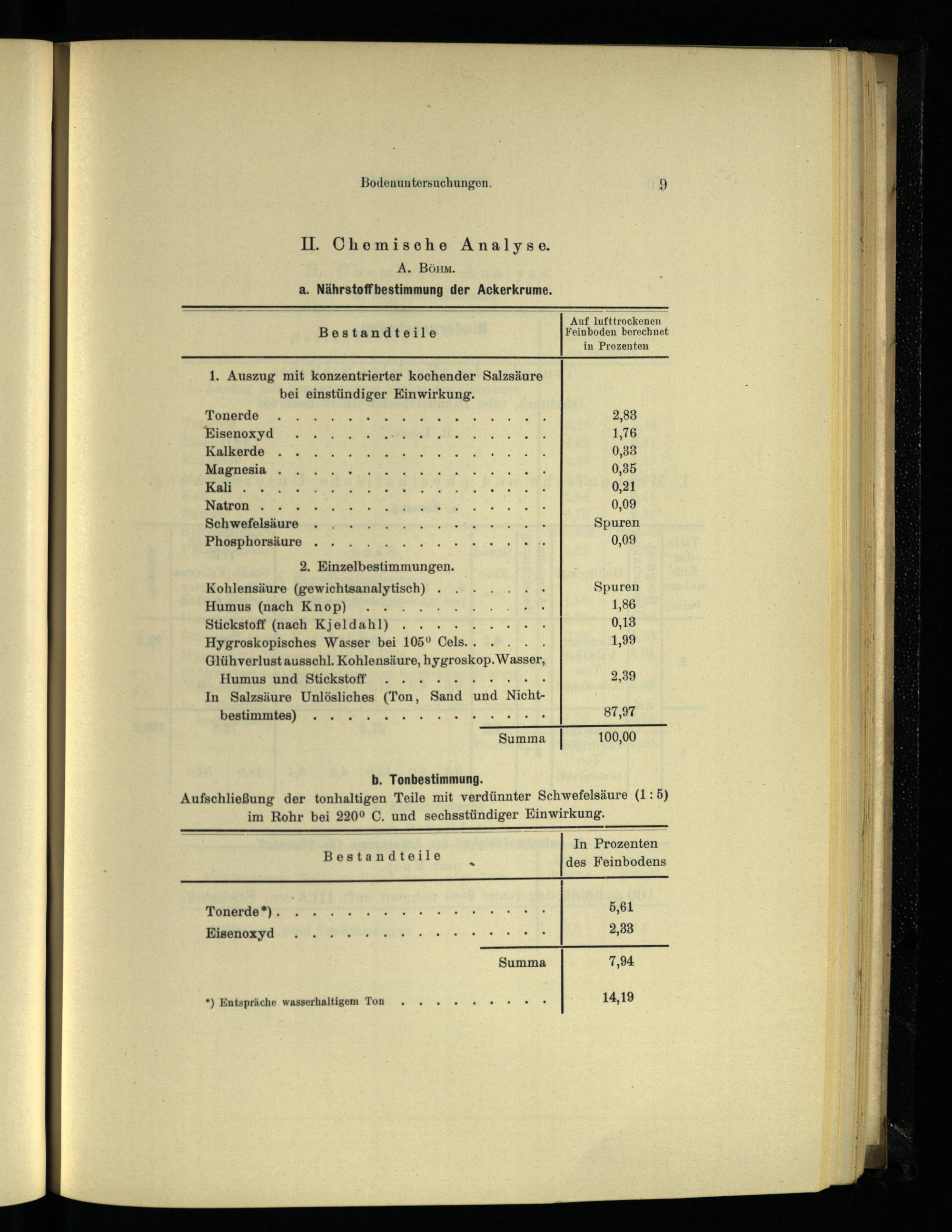 II. Chemische Analyse. A. Bönm. a. Nährstoffbestimmung der Ackerkrume.