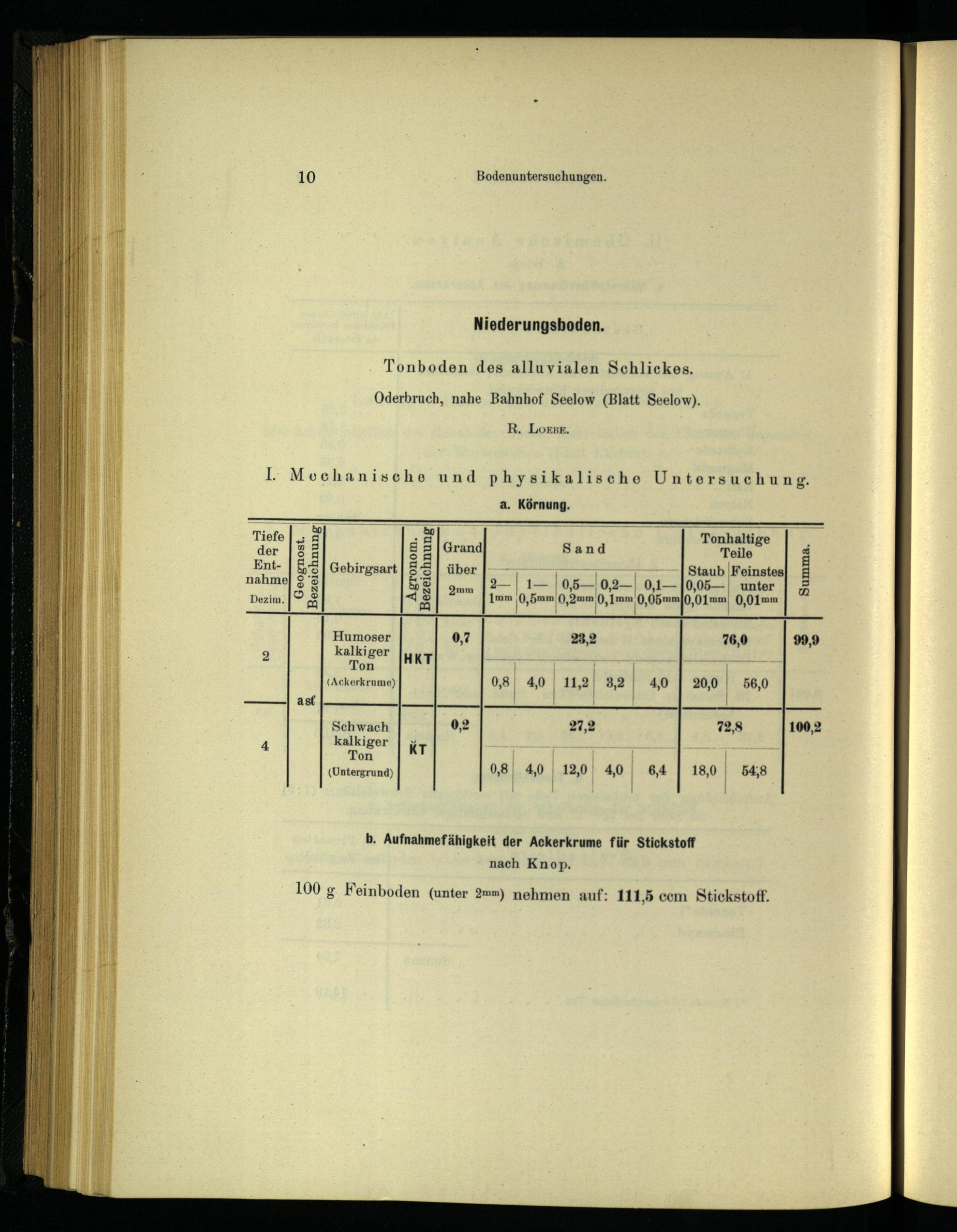 100 g. Feinboden(unter 2mm) nehmen auf: 111,5 ccm Stickstoff.
