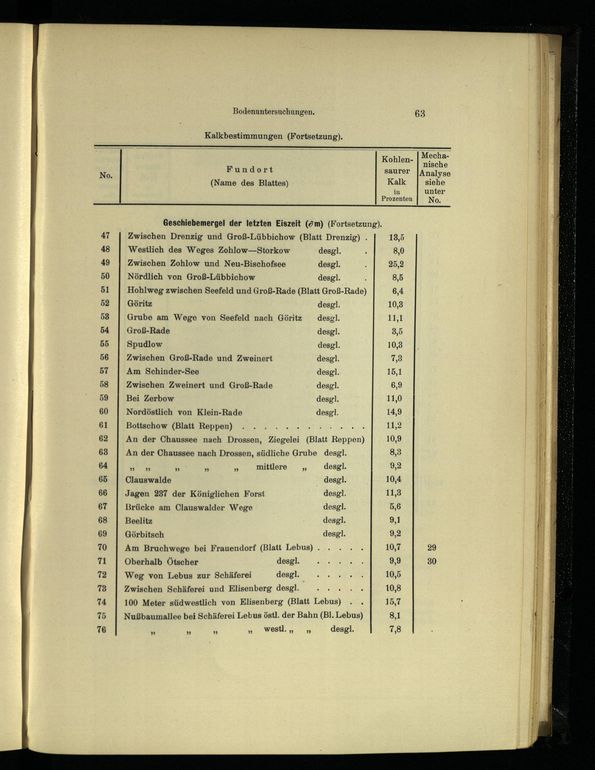 Göritz desgl. Grube am Wege von Seefeld nach Göritz desgl. Groß-Rade desgl. Spudlow desgl. Zwischen Groß-Rade und Zweinert desgl. Am Schinder-See desg]. Zwischen Zweinert und Groß-Rade desg]l. Bei Zerbow desgl. Nordöstlich von Klein-Rade desgl.