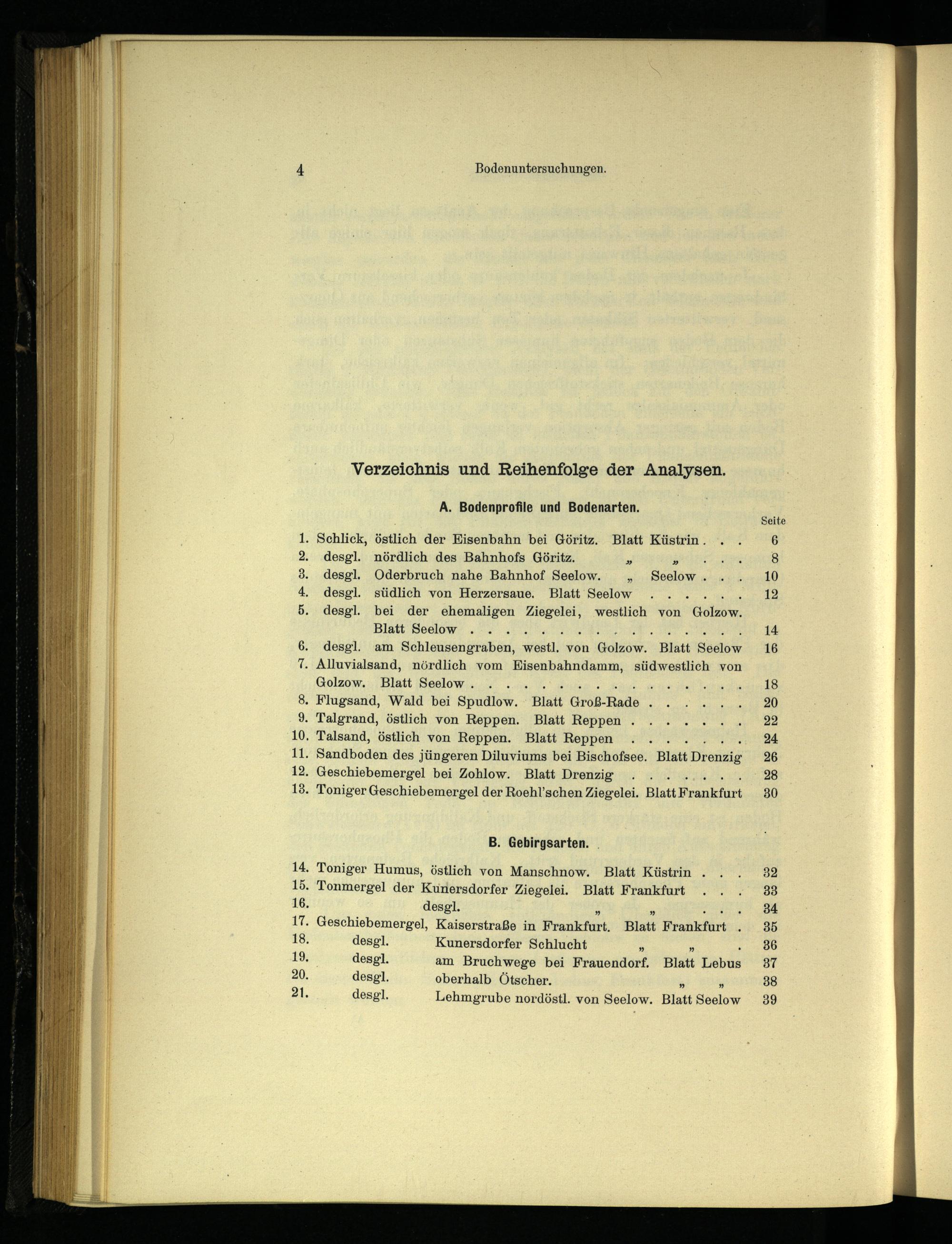 Verzeichnis und Reihenfolge der Analysen.