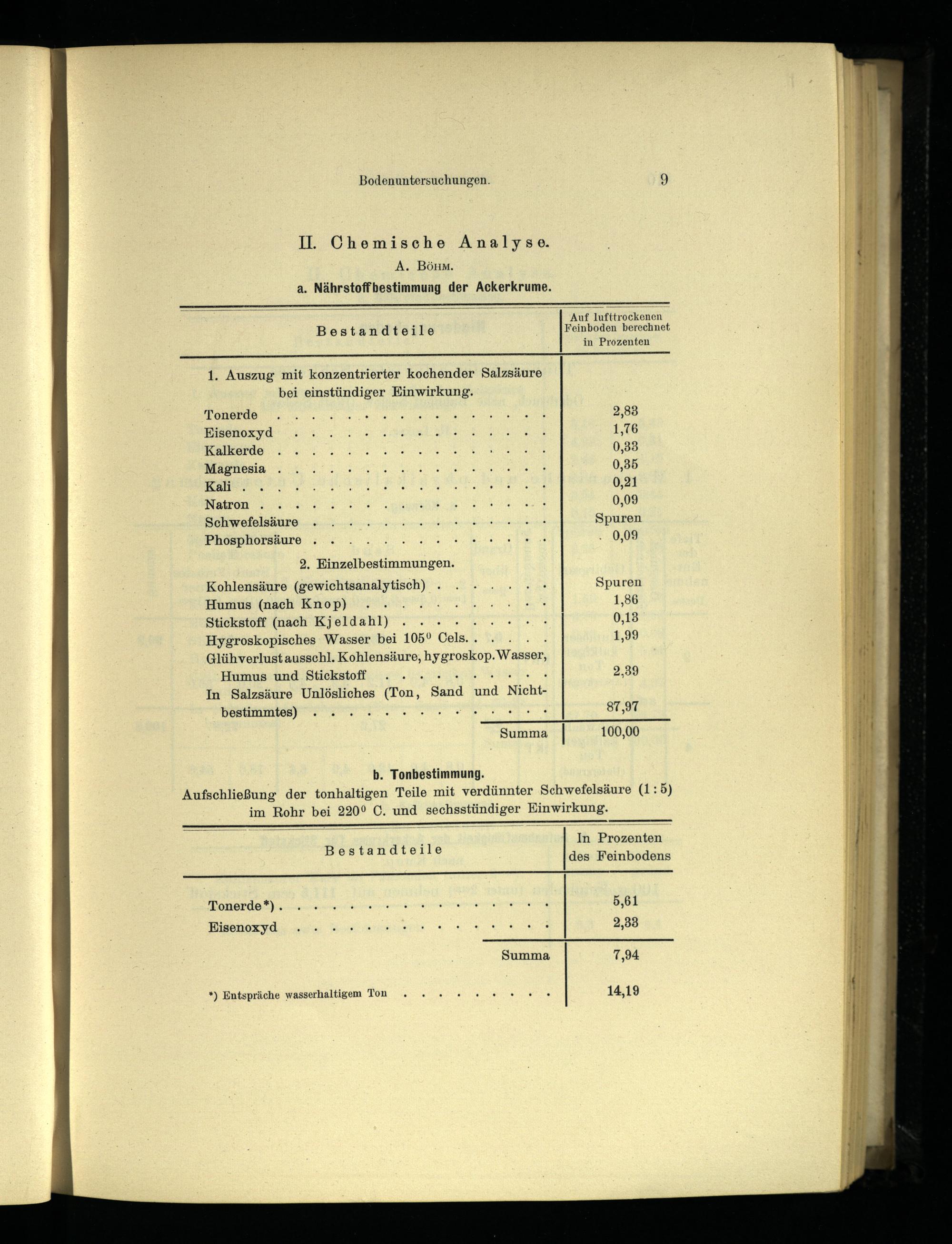 II. Chemische Analyse. A. Böhm. a. Nährstoffbestimmung der Ackerkrume.