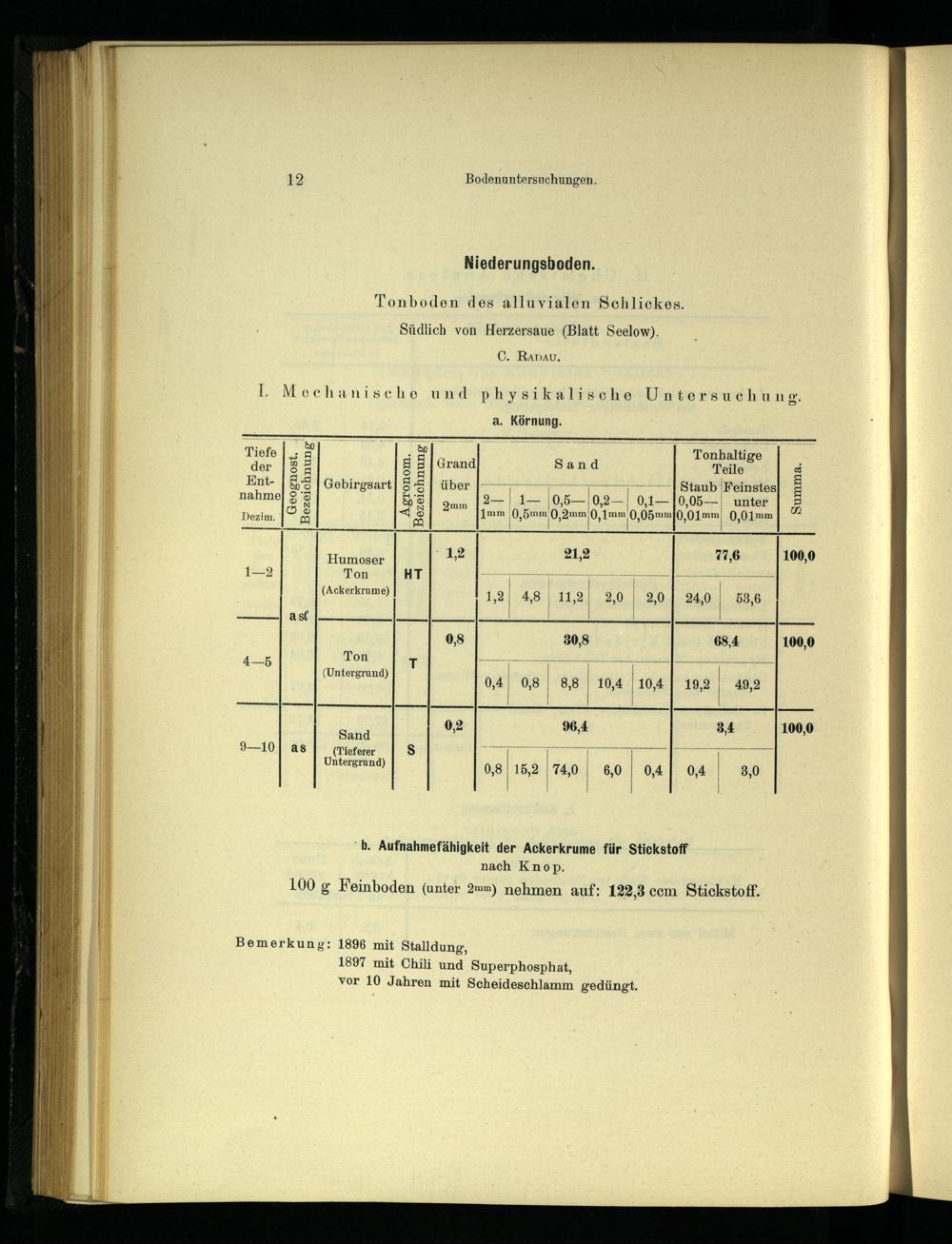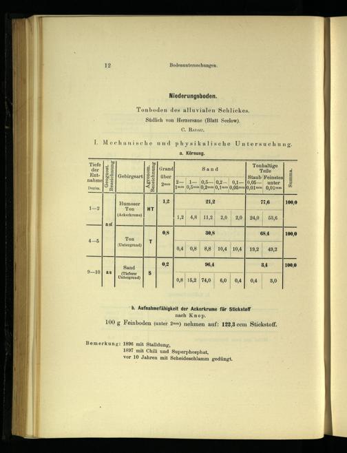 ”b. Aufnahmefähigkeit der Ackerkrume für Stickstoff nach Knop.