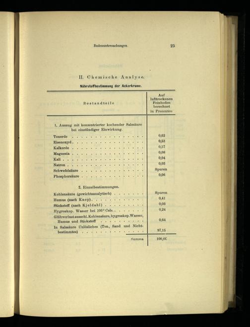 Glühverlust ausschl. Kohlensäure, hygroskop. Wasser, Humus und Stickstoff Ve Uerh In Salzsäure Unlösliches(Ton, Sand und Nicht