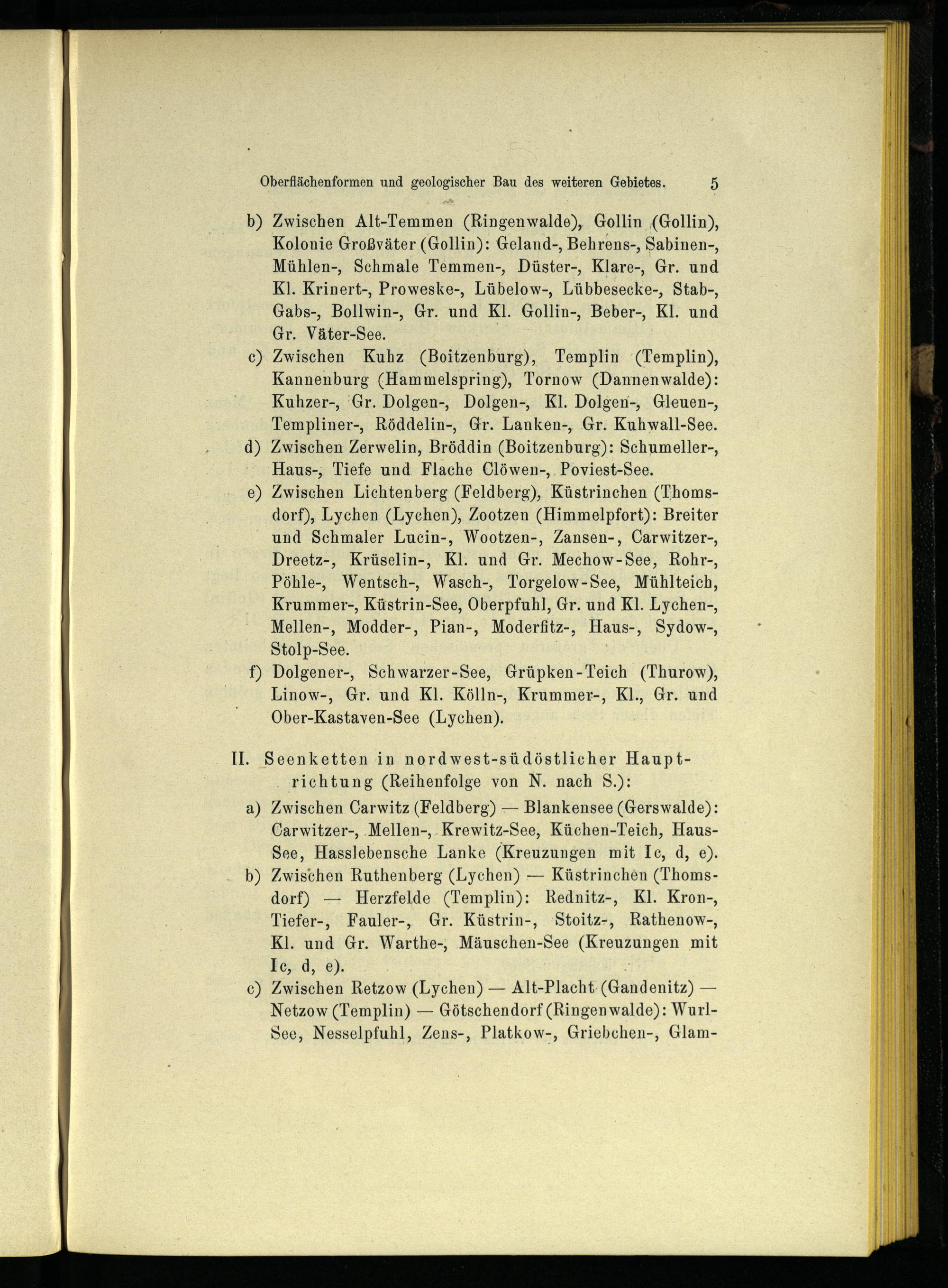 Zwischen Kuhz(Boitzenburg ), Templin (Templin ), Kannenburg(Hammelspring ), Tornow(Dannenwalde): Kuhzer-, Gr. Dolgen-, Dolgen-, Kl. Dolgen-, Gleuen-, Templiner -, Röddelin-, Gr. Lanken-, Gr. Kuhwall-See. Zwischen Zerwelin, Bröddin(Boitzenburg ): Schumeller-, Haus-, Tiefe und Flache Clöwen-, Poviest-See. Zwischen Lichtenberg(Feldberg), Küstrinchen(Thomsdorf), Lychen (Lychen ), Zootzen(Himmelpfort ): Breiter und Schmaler Lucin-, Wootzen-, Zansen-, Carwitzer-, Dreetz -, Krüselin-, Kl. und Gr. Mechow-See, Rohr-, Pöhle-, Wentsch-, Wasch-, Torgelow-See, Mühlteich, Krummer-, Küstrin -See, Oberpfuhl, Gr. und Kl. Lychen-, Mellen-, Modder-, Pian-, Moderfitz-, Haus-, Sydow-, Stolp-See.;