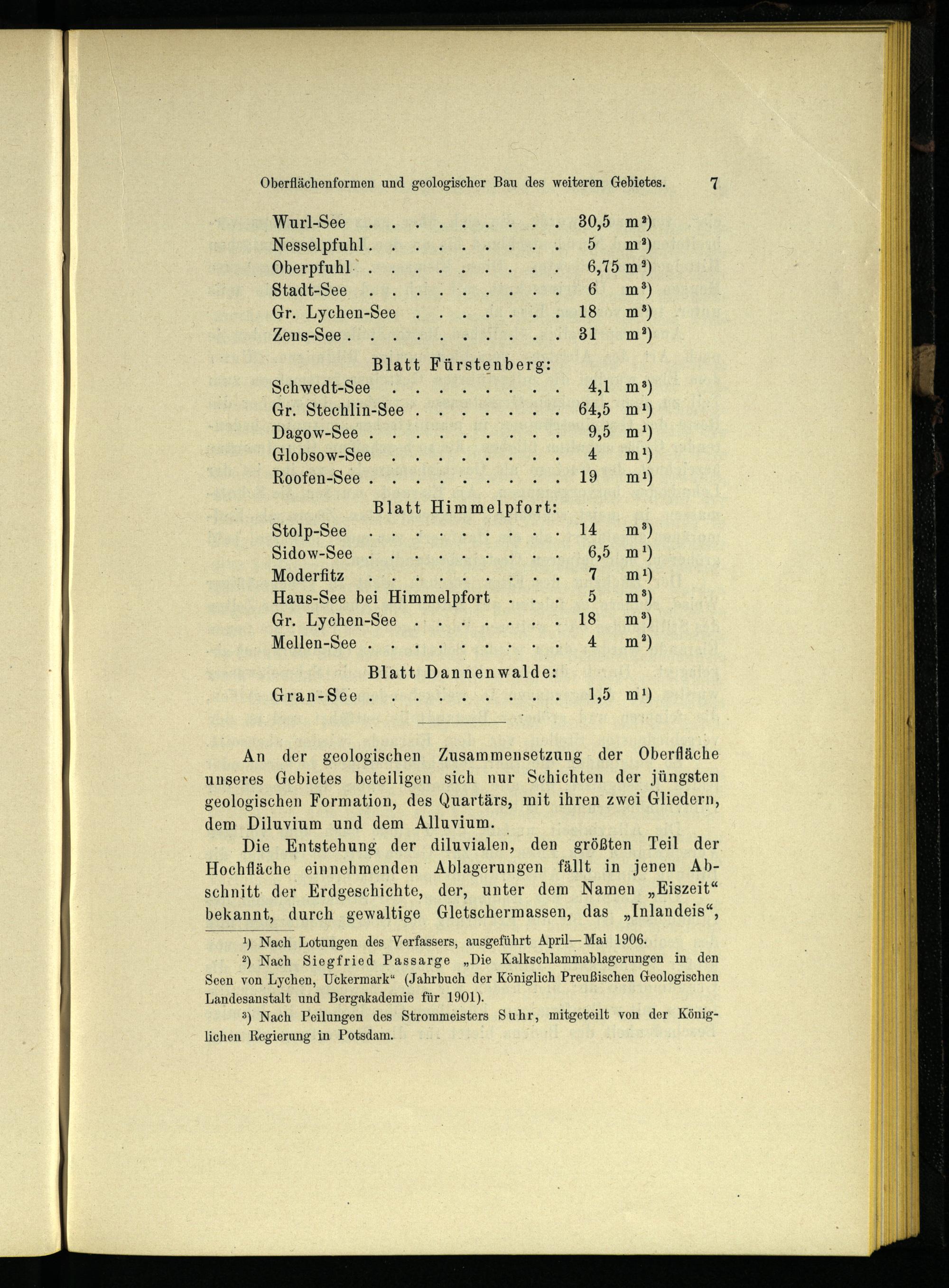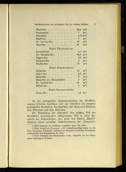 Blatt Fürstenberg: Schwedt-See.. 2...... 4,1 m) Gr. Stechlin-See'.:.'.. 1 64,5 m!) Dazow-See... 2.4... 0 9,0 m) Globsow-See 2.... N 4 m) RKoofen-See.,.,...... 719 m)