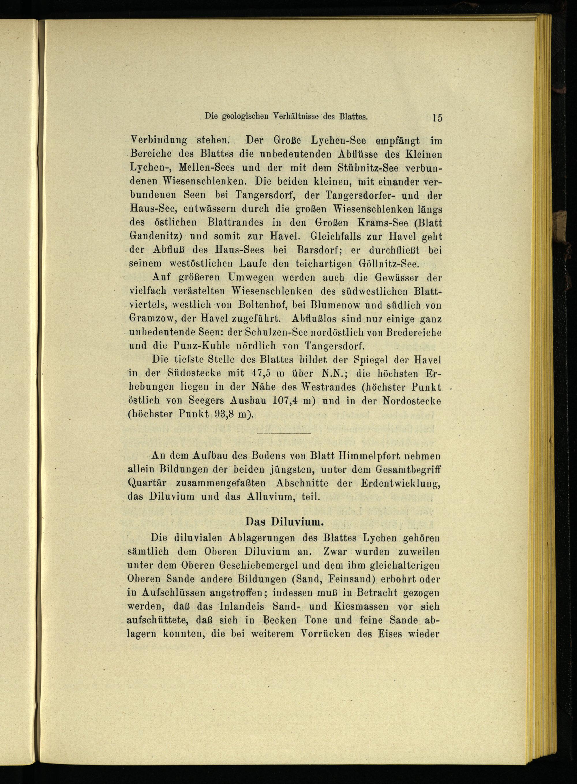 An dem Aufbau des Bodens von Blatt Himmelpfort nehmen allein Bildungen der‘ beiden jüngsten, unter dem Gesamtbegriff Quartär zusammengefaßten Abschnitte der Erdentwicklung, das Diluvium und das Alluvium, teil.