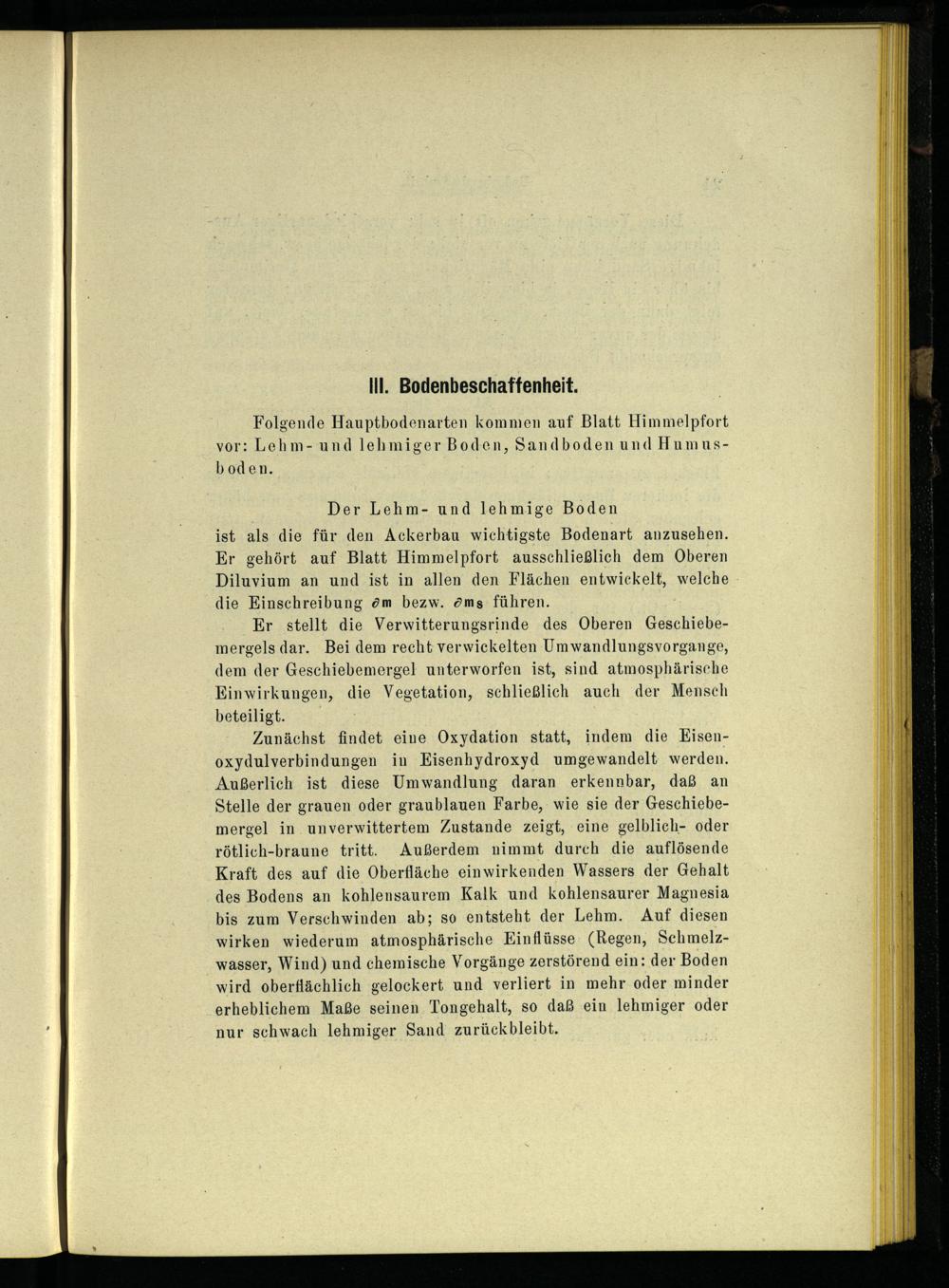 ist als die für den Ackerbau wichtigste Bodenart anzusehen. Er gehört auf Blatt Himmelpfort ausschließlich dem Oberen Diluvium an und ist in allen den Flächen entwickelt, welche die Einschreibung öm bezw. öms führen.