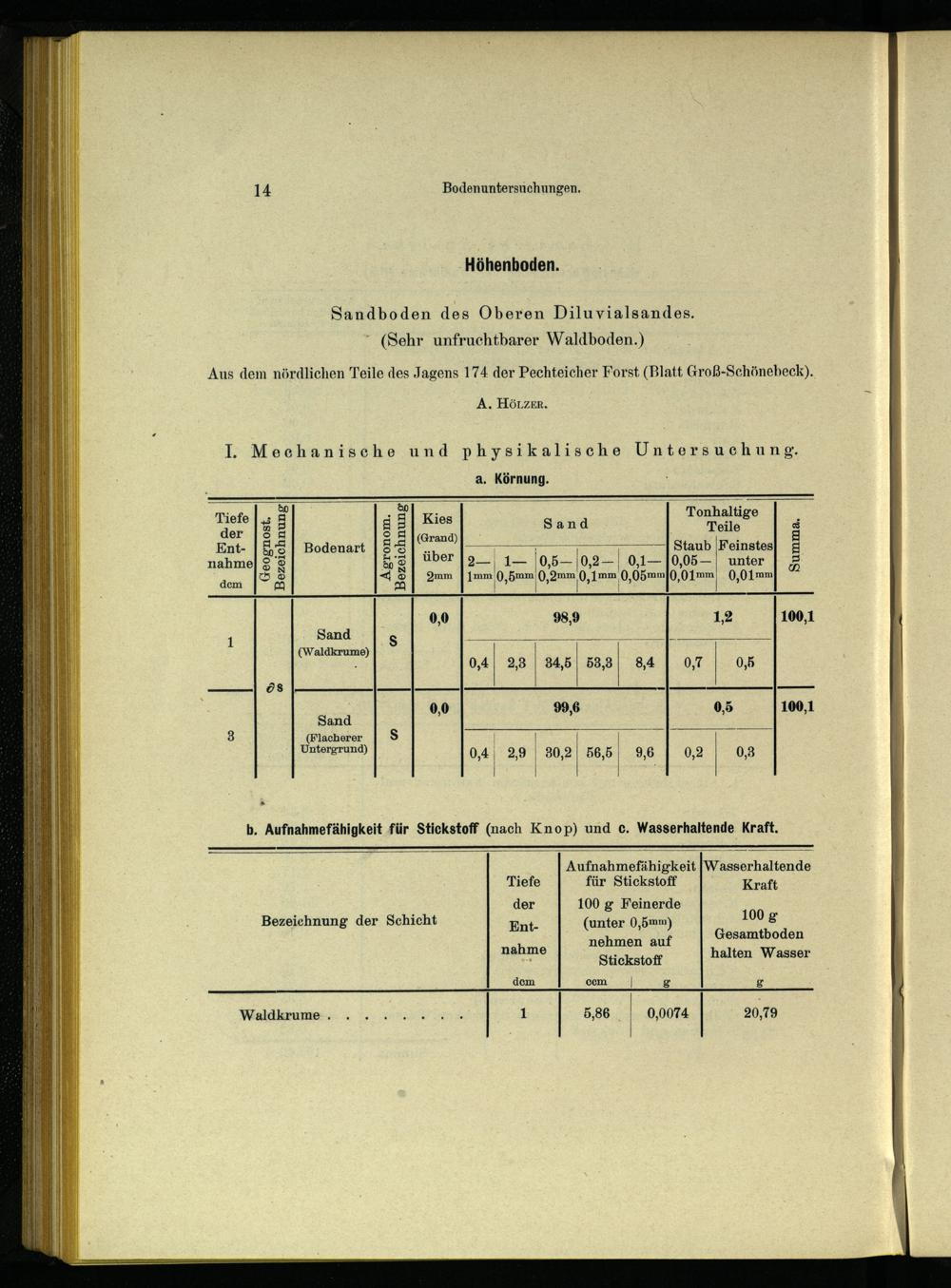 b. Aufnahmefähigkeit für Stickstoff(nach Knop) und c. Wasserhaltende Kraft,