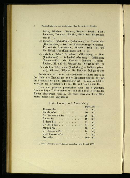 Über die größeren preußischen Seen des bearbeiteten Gebietes liegen Tiefenangaben vor und sind in die betreffenden Blätter eingetragen worden. Es seien hierunter die größten Tiefen dieser Seen angegeben: