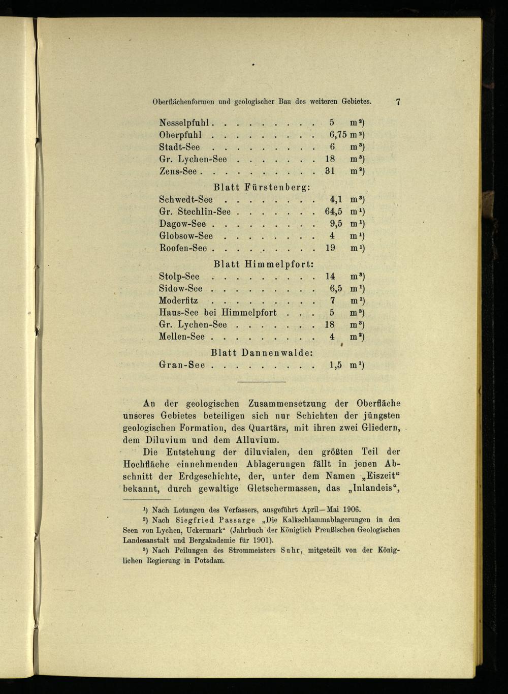 2) Nach Siegfried Passarge „Die Kalkschlammablagerungen in den Seen von Lychen , Uckermark “(Jahrbuch der Königlich Preußischen Geologischen Landesanstalt und Bergakademie für 1901).