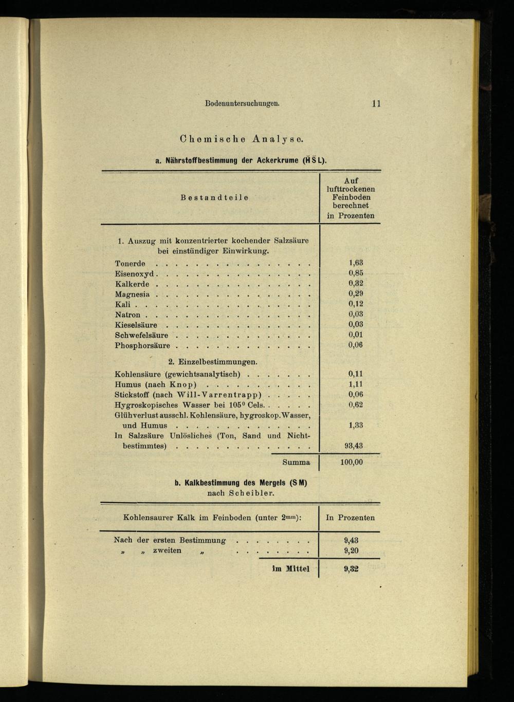 und Humus. 40 A EN 1,33 In Salzsäure Unlösliches(Ton, Sand und Nichtbestimmtes). 1.0 EN NER 93,43