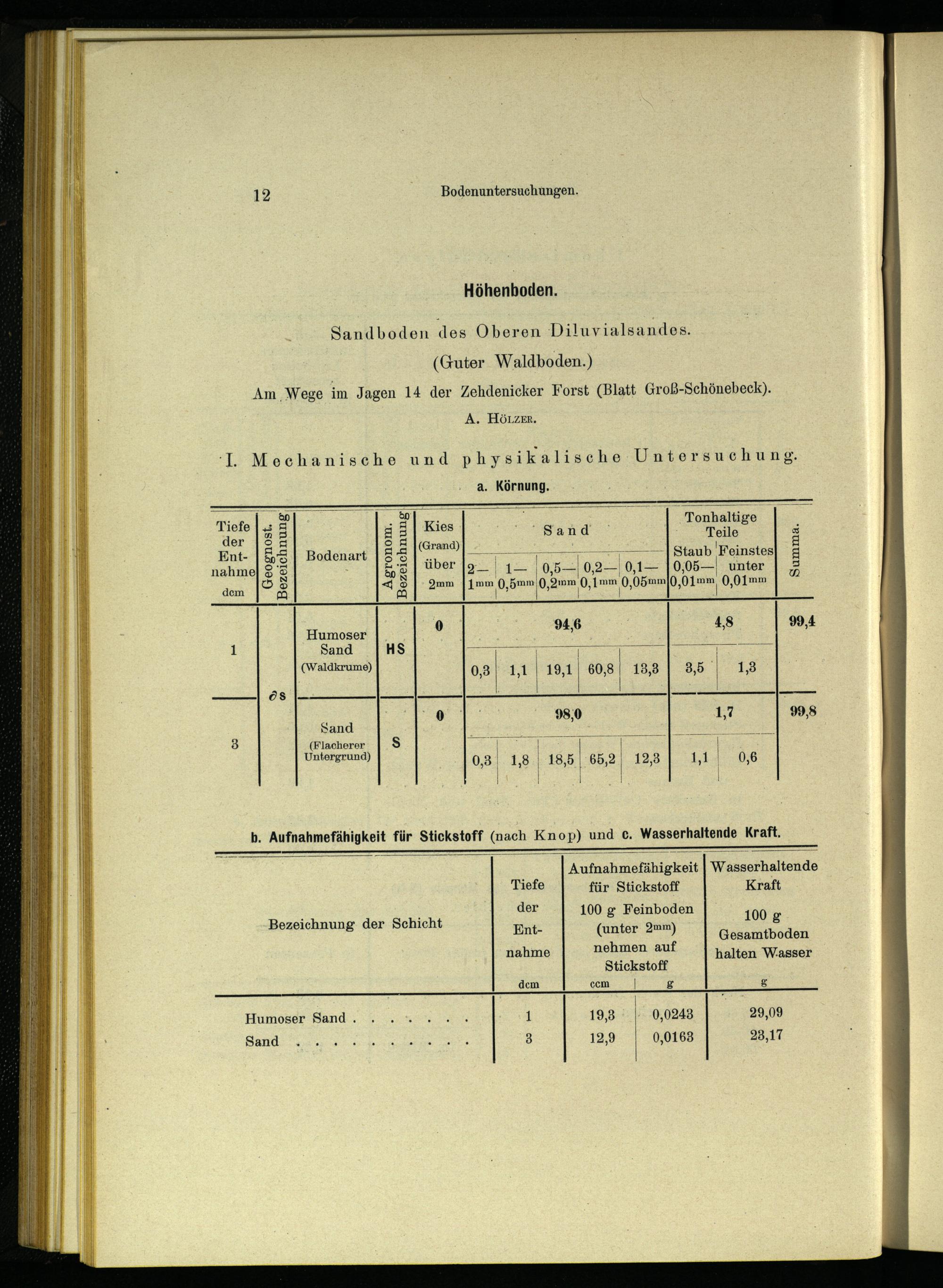b. Aufnahmefähigkeit für Stickstoff(nach Knop) und c. Wasserhaltende Kraft,