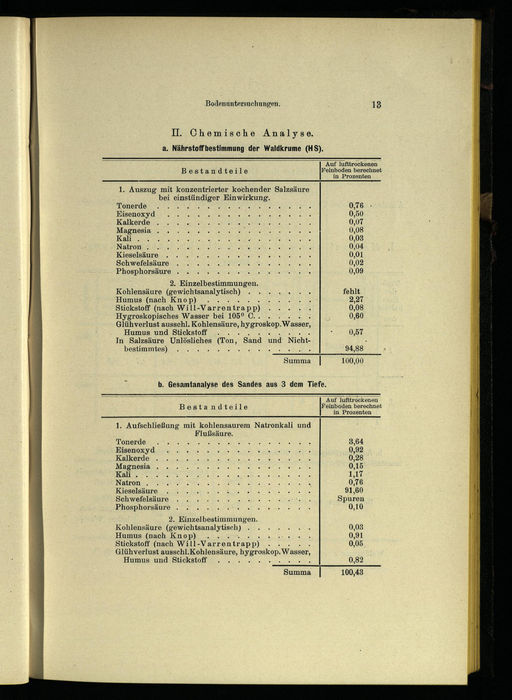 II. Chemische Analyse. a. Nährstoffbestimmung der Waldkrume(HS).