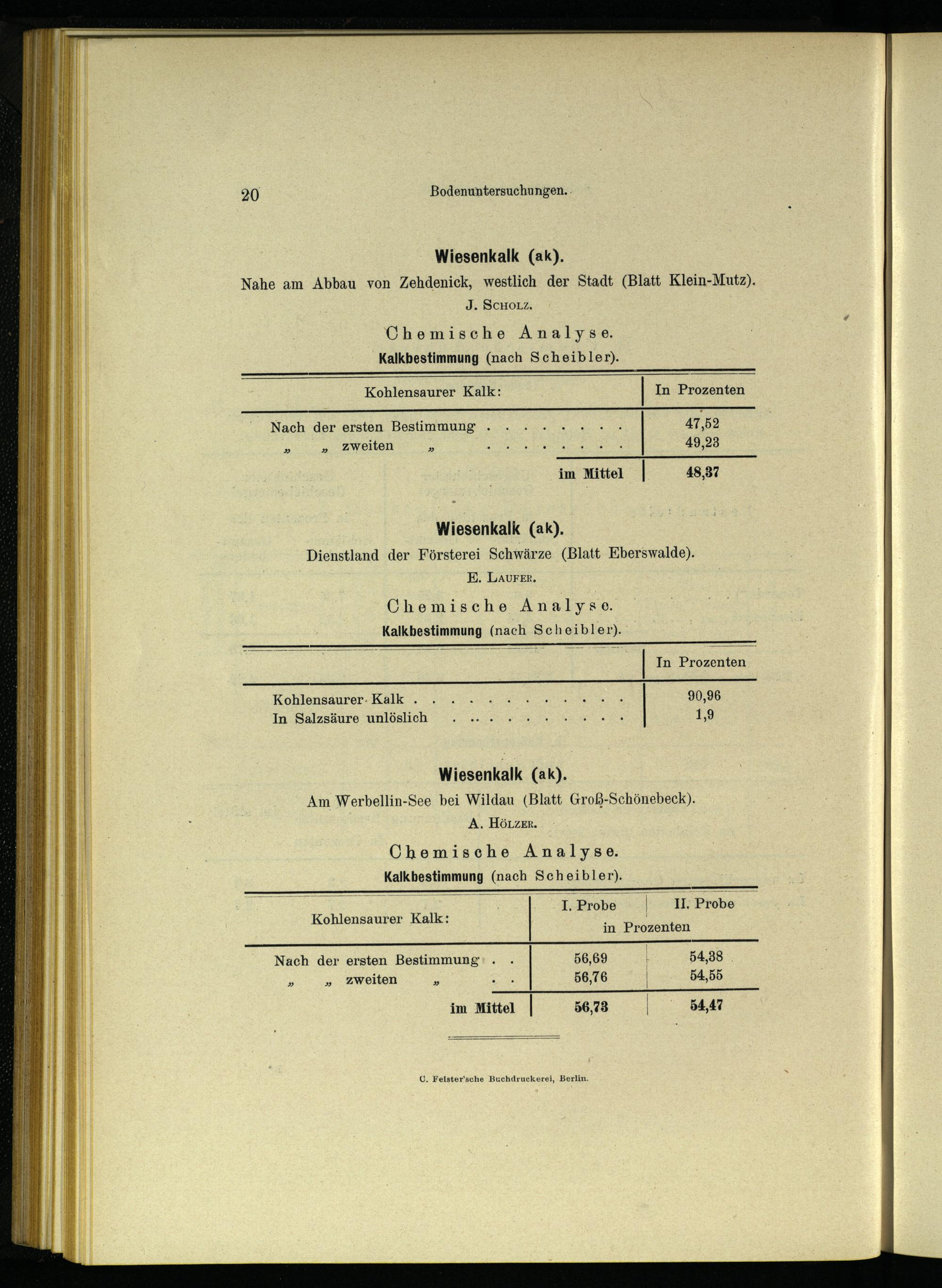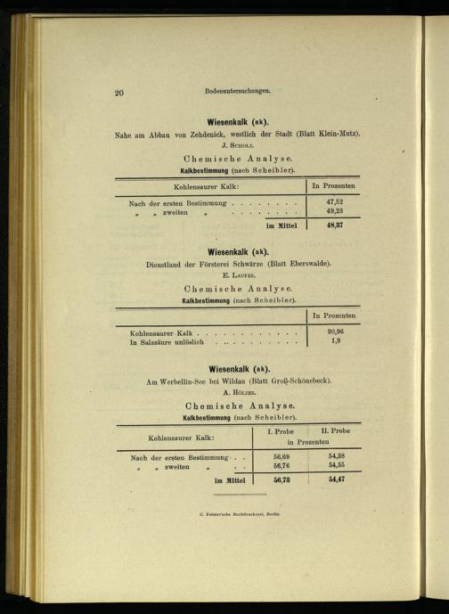 Wiesenkalk(ak). Nahe am Abbau von Zehdenick , westlich der Stadt(Blatt Klein-Mutz). J. SCHOLZ, Chemische Analyse. Kalkbestimmung(nach Scheibler).