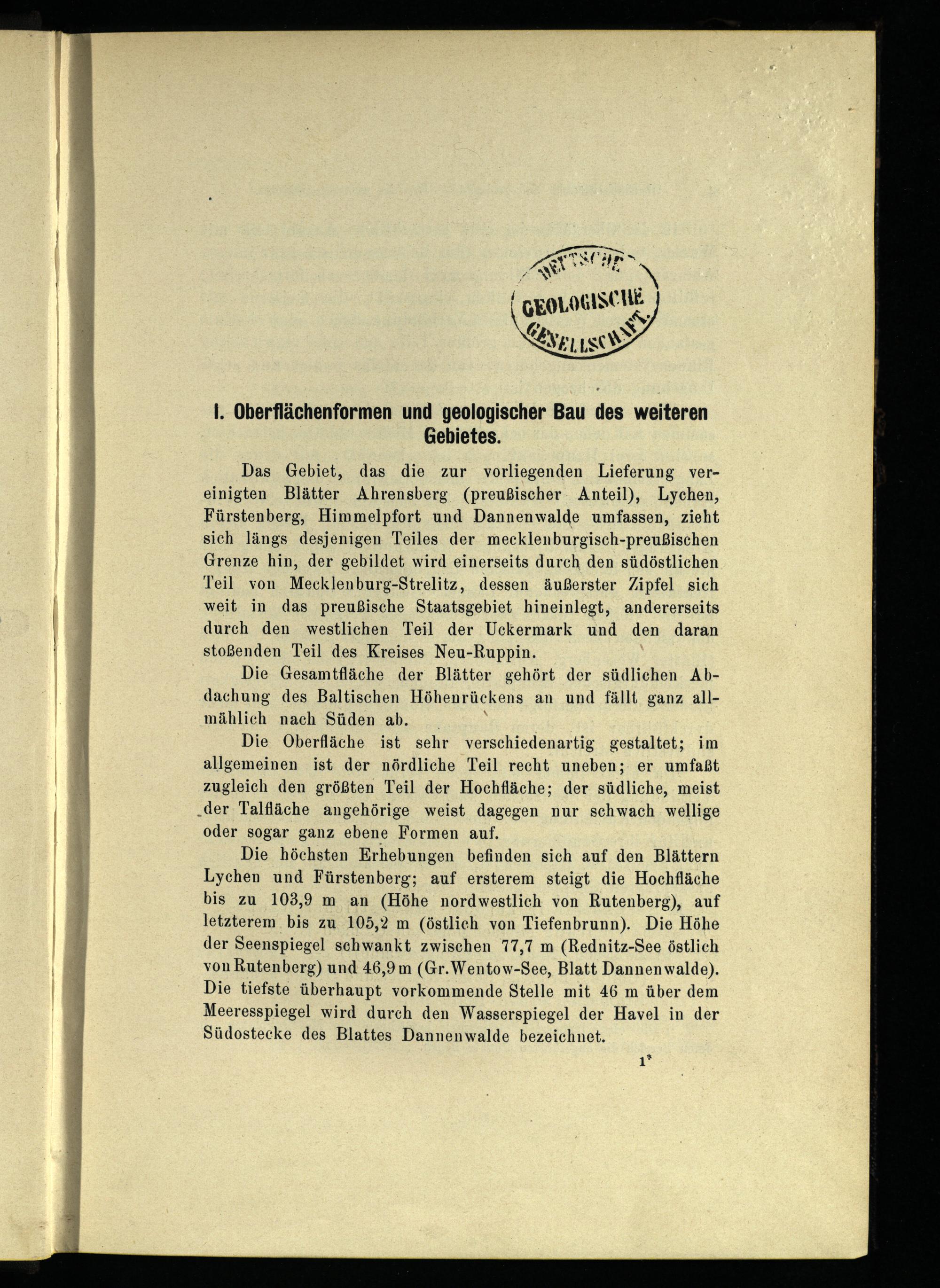 Das Gebiet, das die zur vorliegenden Lieferung vereinigten Blätter Ahrensberg (preußischer Anteil), Lychen , Fürstenberg , Himmelpfort und Dannenwalde umfassen, zieht sich längs desjenigen Teiles der mecklenburgisch-preußischen Grenze hin, der gebildet wird einerseits durch den südöstlichen Teil von Mecklenburg-Strelitz , dessen äußerster Zipfel sich weit in das preußische Staatsgebiet hineinlegt, andererseits durch den westlichen Teil der Uckermark und den daran stoßenden Teil des Kreises Neu-Ruppin .