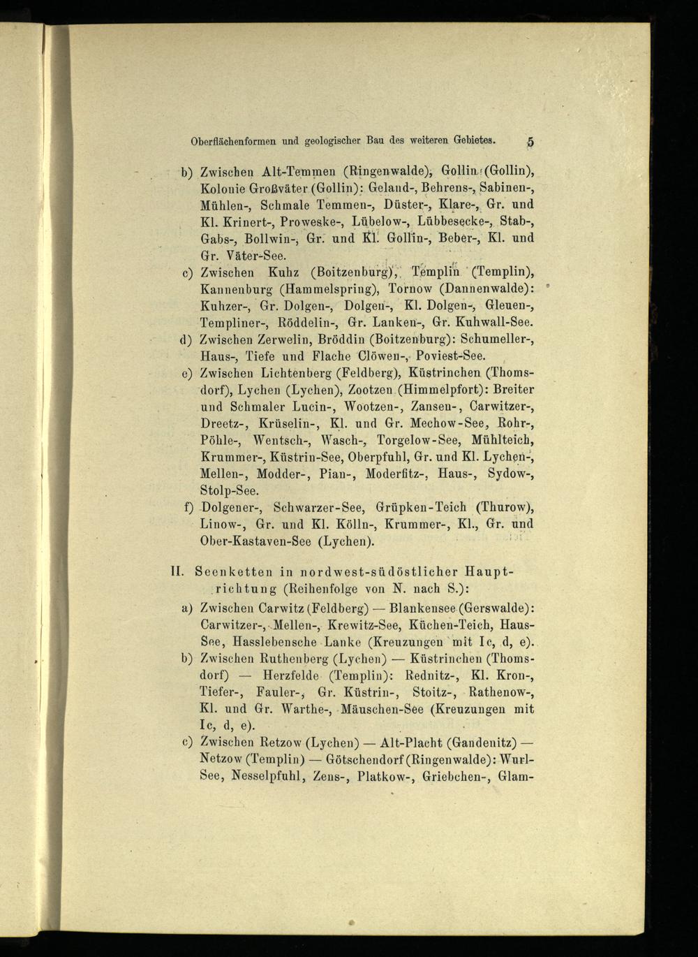 Zwischen Kuhz(Boitzenburg Dr. Templin°(Templin), Kannenburg(Hammelspring), Tornow(Dannenwalde): Kuhzer-, Gr. Dolgen-, Dolgen-, Kl. Dolgen-, Gleuen-, Templiner-, Röddelin-, Gr. Lanken-, Gr. Kuhwall-See. Zwischen Zerwelin, Bröddin(Boitzenburg): Schumeller-, Haus-, Tiefe und Flache Clöwen-, Poviest-See. Zwischen Lichtenberg(Feldberg), Küstrinchen(Thomsdorf), Lychen(Lychen), Zootzen.(Himmelpfort): Breiter und Schmaler Lucin-, Wootzen-, Zansen-, Carwitzer-, Dreetz-, Krüselin-, Kl. und Gr. Mechow-See, Rohr-, Pöhle-, Wentsch-, Wasch-, Torgelow-See, Mühlteich, Krummer-, Küstrin-See, Oberpfuhl, Gr. und Kl. Lychen-, Mellen-, Modder-, Pian-, Moderfitz-, Haus-, Sydow-, Stolp-See.