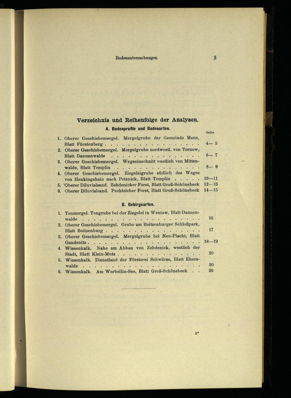 Verzeichnis und Reihenfolge der Analysen. A. Bodenprofile und Bodenarten.
