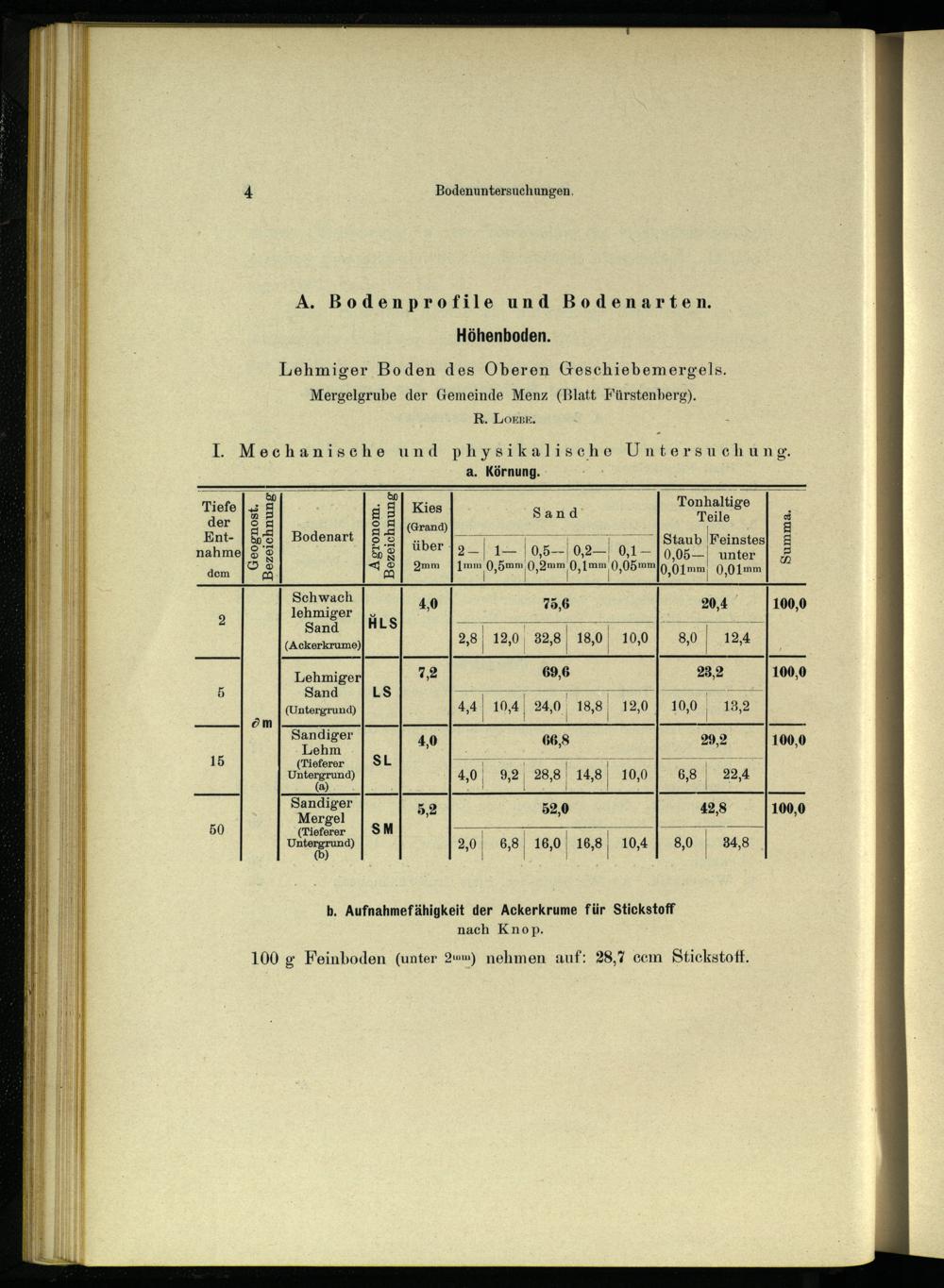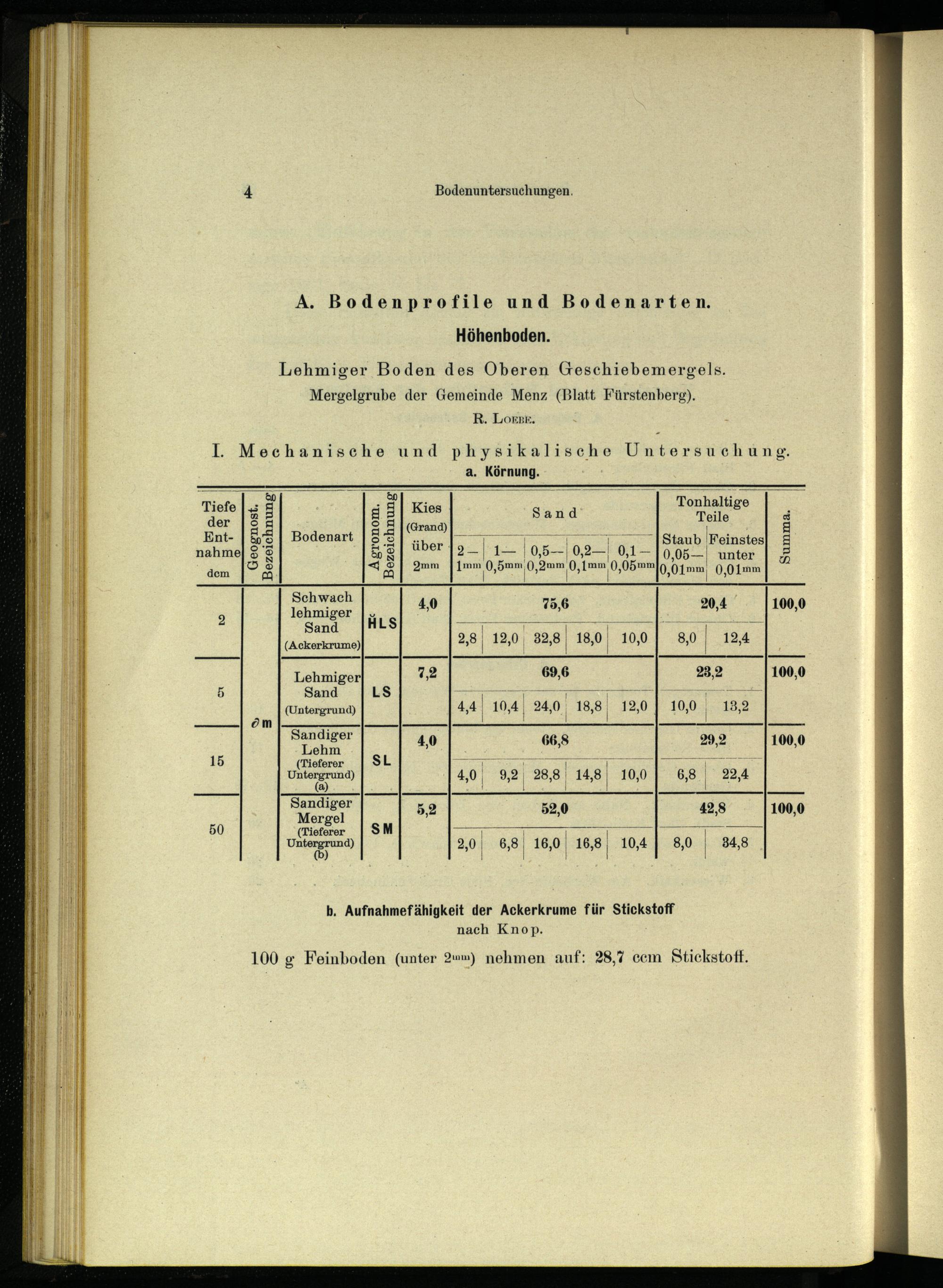 A. Bodenprofile und Bodenarten. Höhenboden.