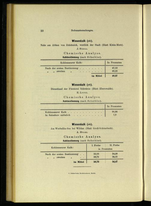 Wiesenkalk(ak). Am Werbellin-See bei Wildau (Blatt Groß-Schönebeck). A. HöLzeEr. Chemische Analyse. Kalkbestimmung(nach Scheibler).