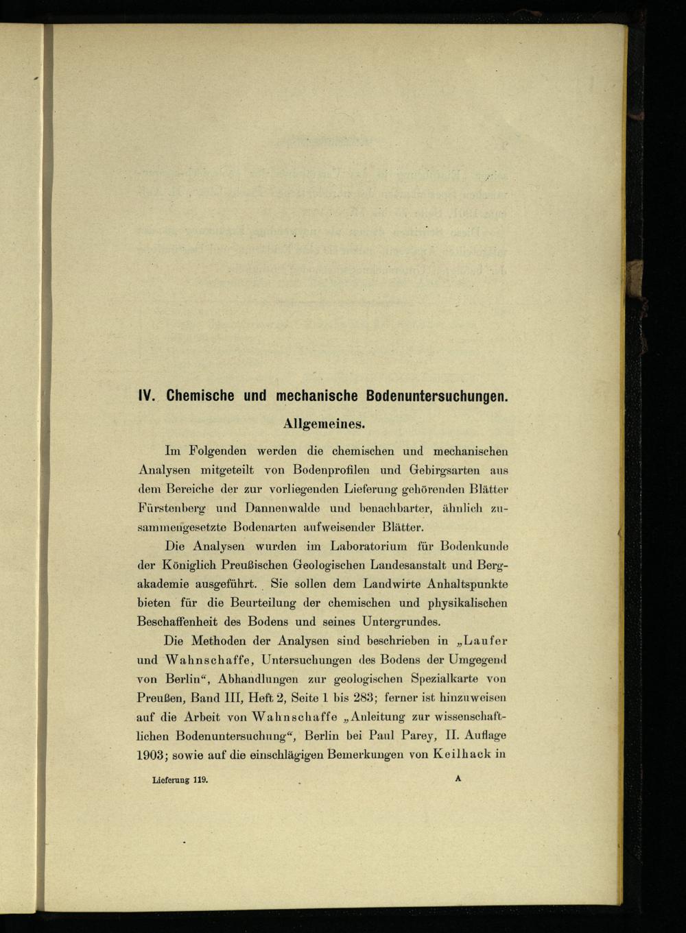 IV.‘ Chemische und mechanische Bodenuntersuchungen. Allgemeines.