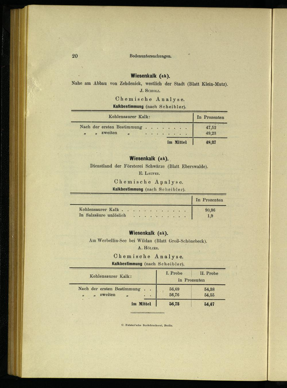 - Wiesenkalk(ak). Nahe am Abbau von Zehdenick , westlich der Stadt(Blatt Klein-Mutz). J. SCHOLZ. Chemische Analyse. Kalkbestimmung(nach Scheibler).