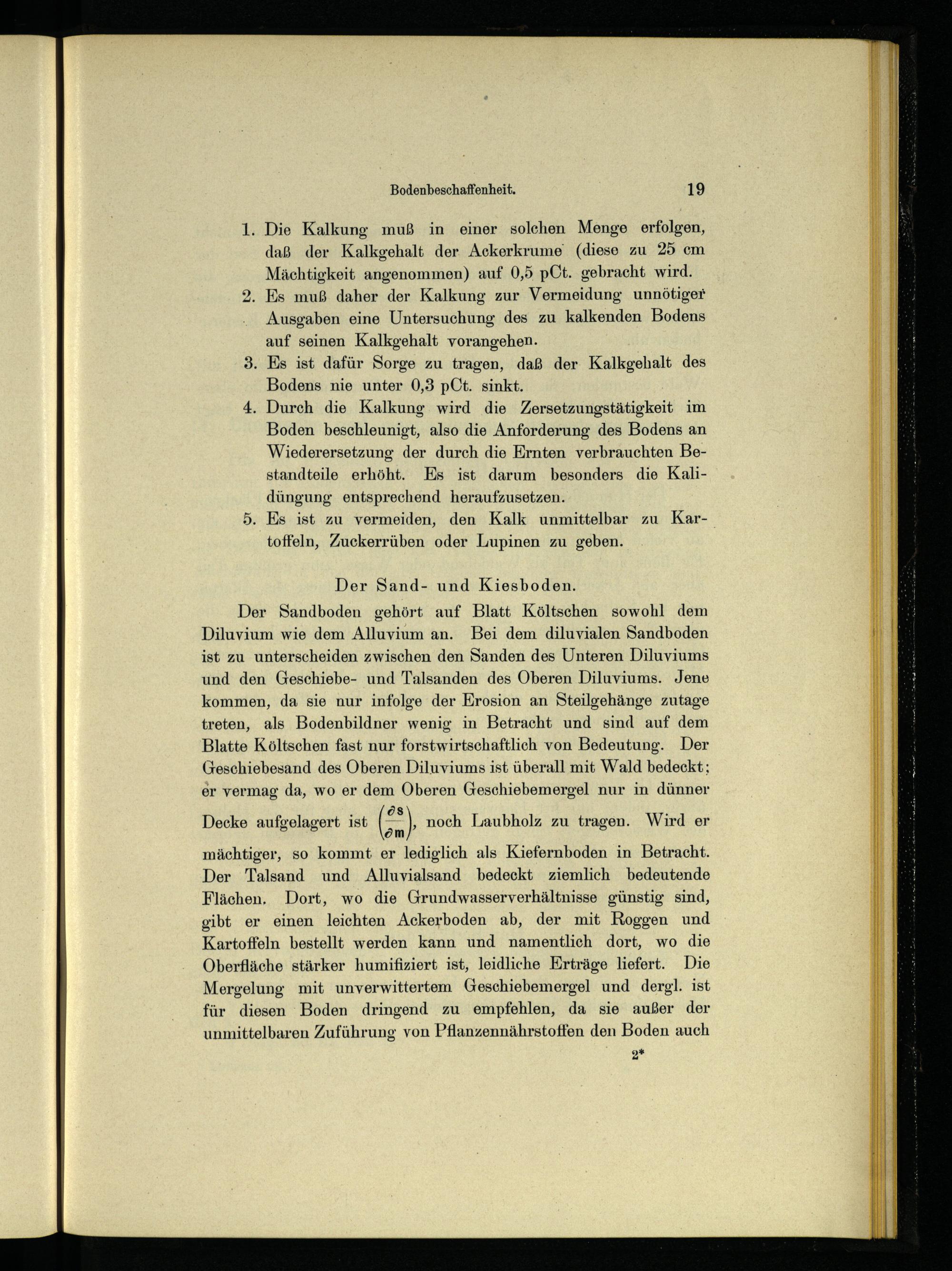 . Die Kalkung muß in einer solchen Menge erfolgen, daß der Kalkgehalt der Ackerkrume(diese zu 25 cm Mächtigkeit angenommen) auf 0,5 pCt. gebracht wird.