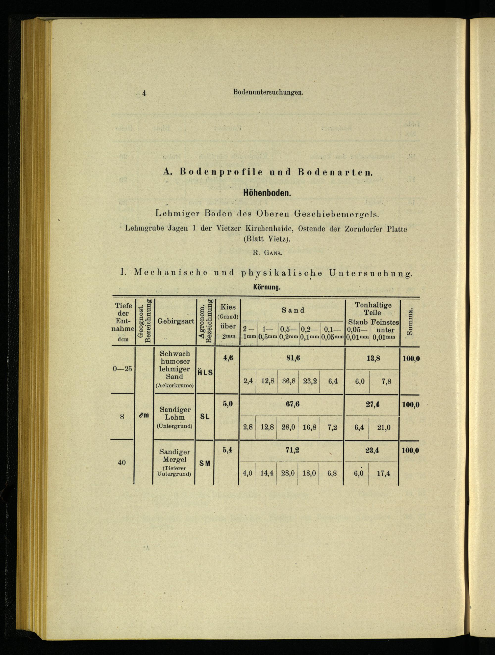 A. Bodenprofile und Bodenarten. Höhenboden.