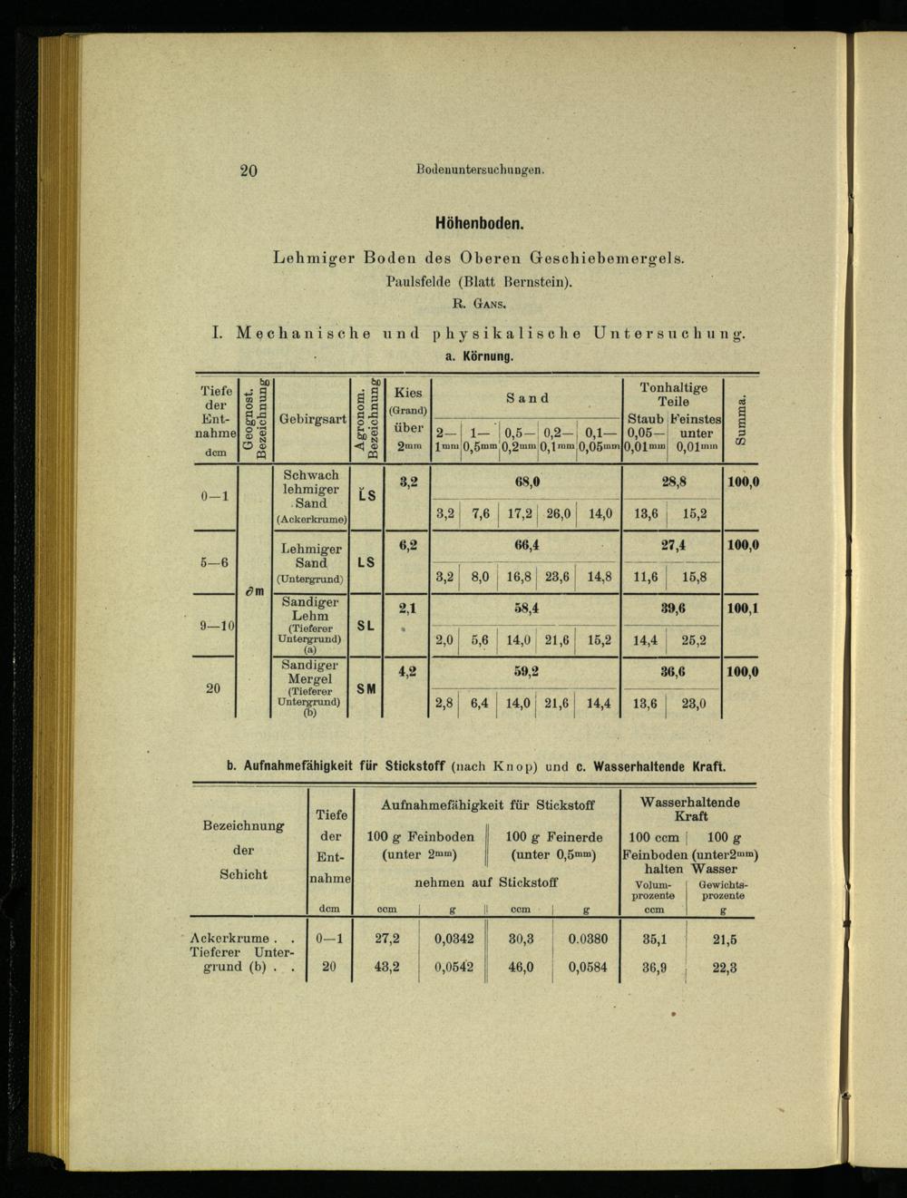 I. Mechanische und physikalische Untersuchung. a. Körnung. Tonhaltige