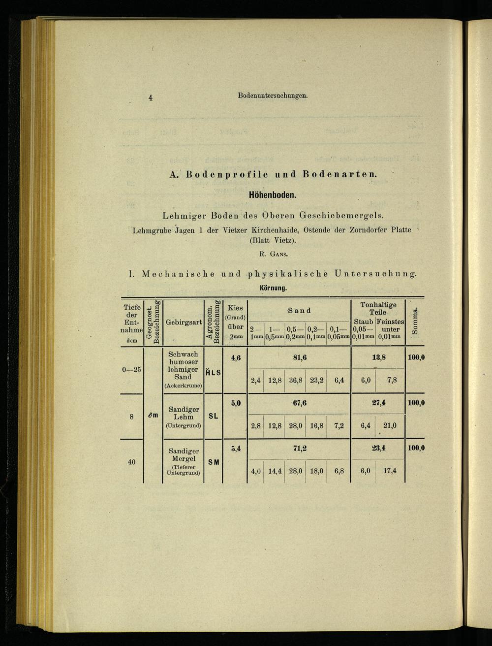 A. Bodenprofile und Bodenarten. Höhenboden.