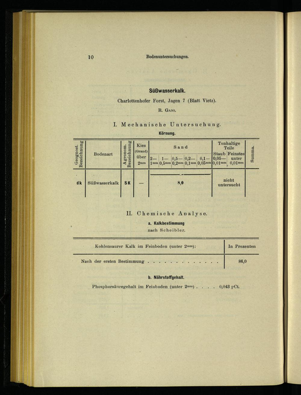 Süßwasserkalk. Charlottenhofer Forst, Jagen 7(Blatt Vietz). R. Gans.