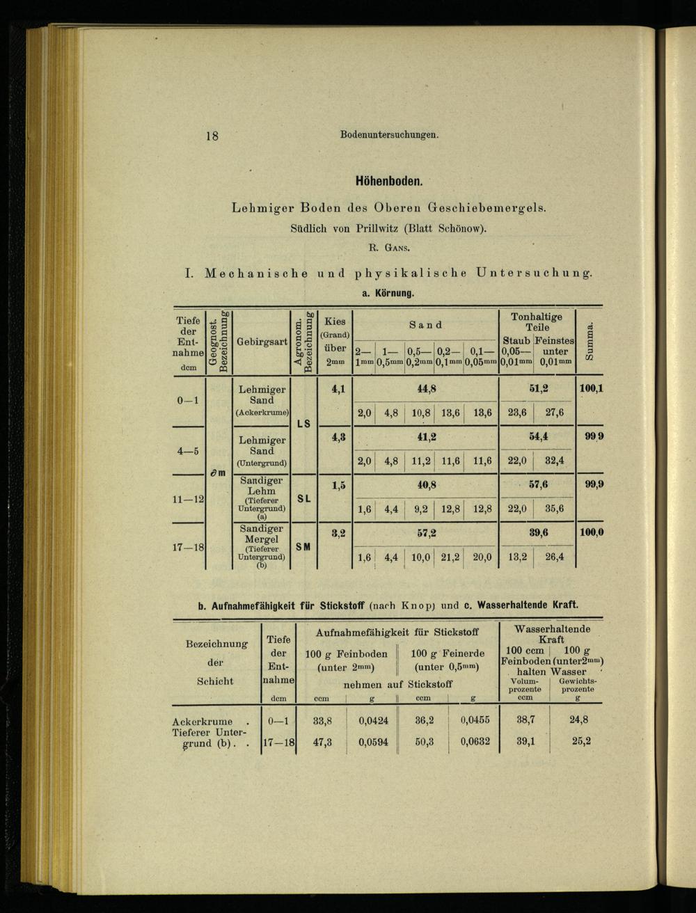 b. Aufnahmefähigkeit für Stickstoff(nach Knop) und c. Wasserhaltende Kraft.