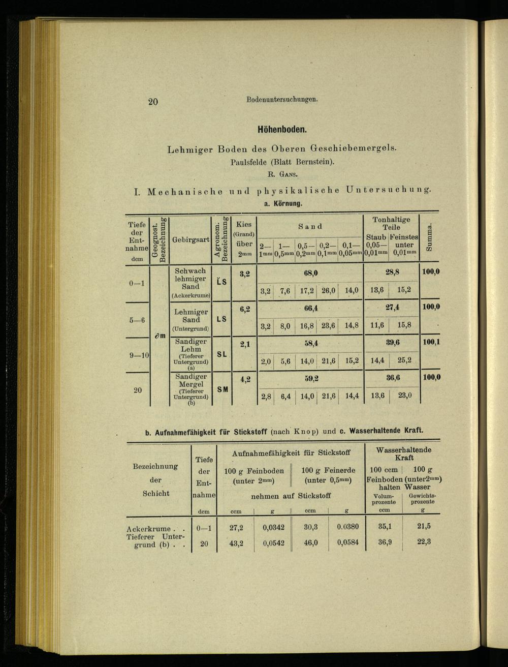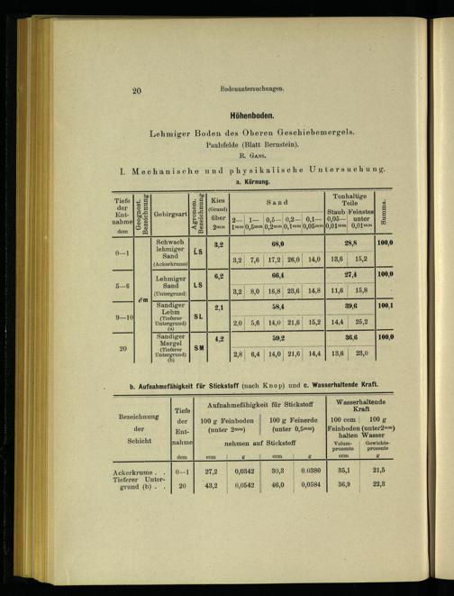 b. Aufnahmefähigkeit für Stickstoff(nach Knop) und c. Wasserhaltende Kraft.