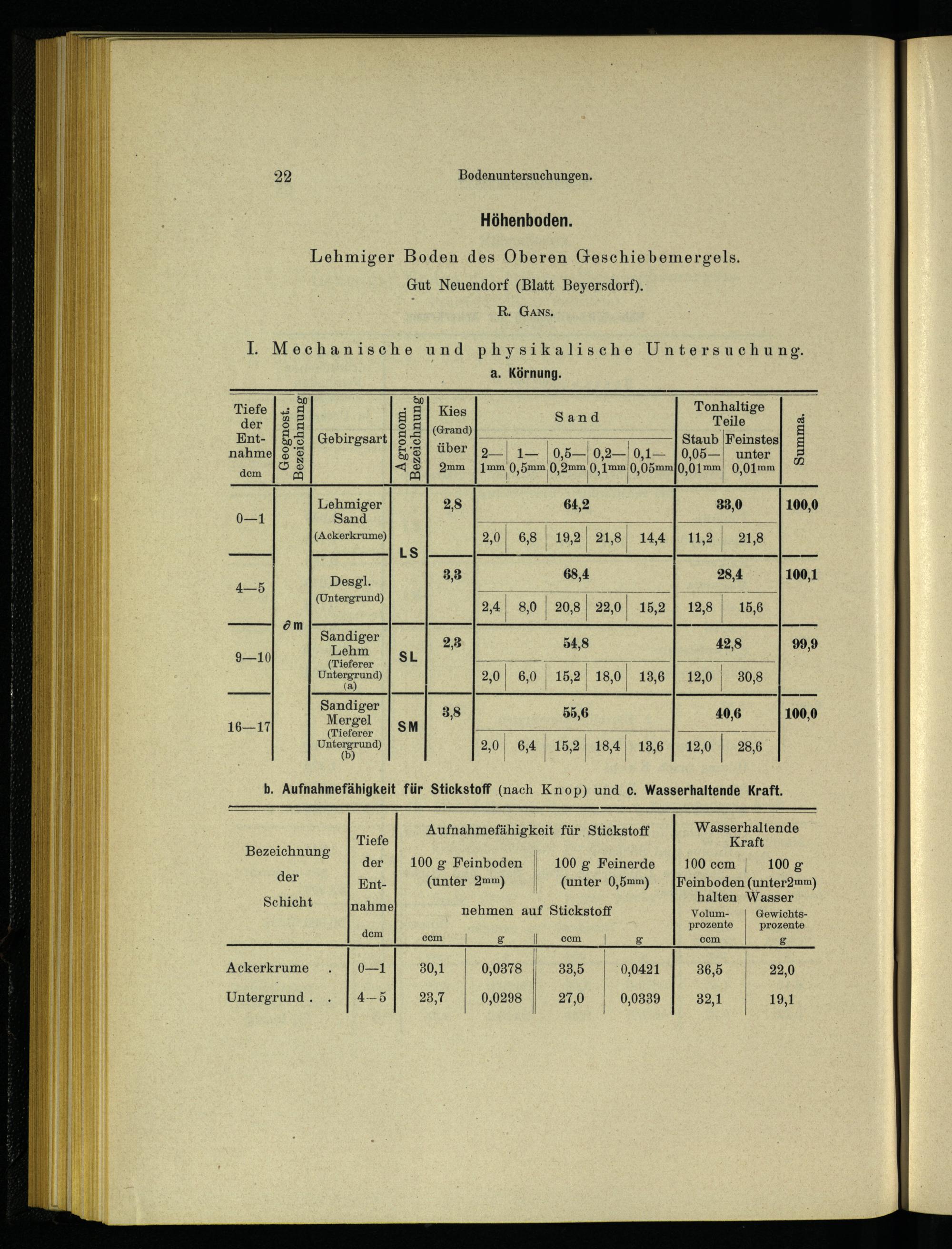 1. Mechanische und physikalische Untersuchung. a. Körnung.