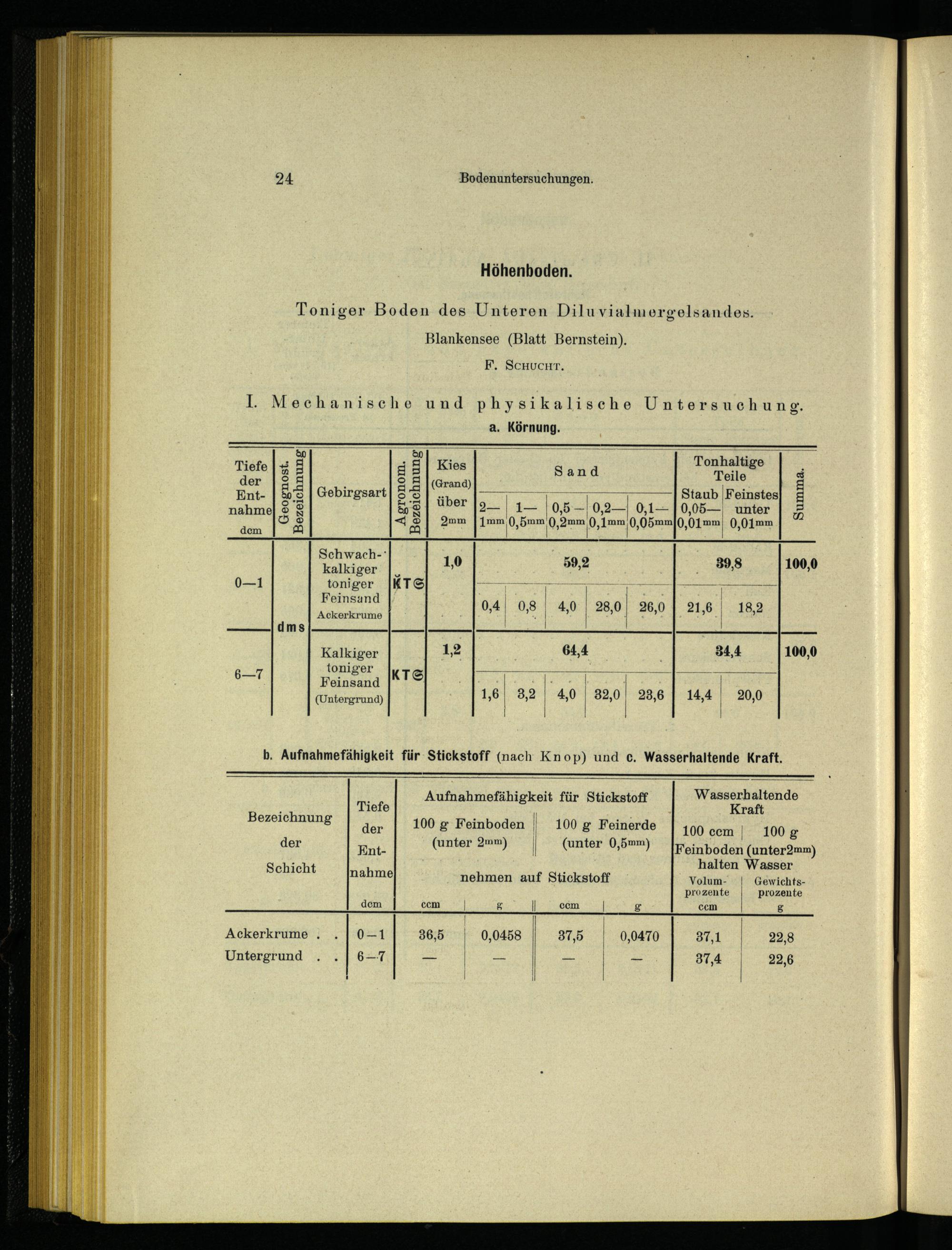 . Aufnahmefähigkeit für Stickstoff Wasserhaltende Tiefe N;: Kraft der 100 g Feinboden| 100 g Feinerde 100 cem 100 g