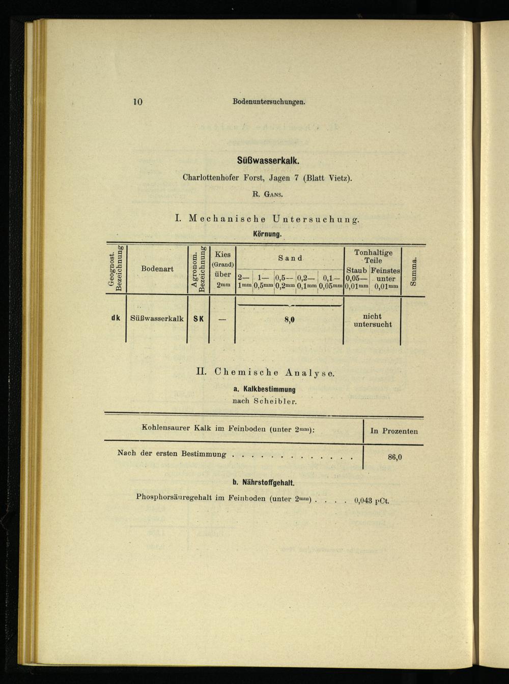 Süßwasserkalk. Charlottenhofer Forst, Jagen 7(Blatt Vietz). R,. Gans,