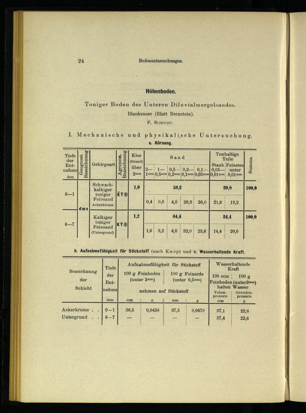 b. Aufnahmefähigkeit für Stickstoff(nach Knop) und c. Wasserhaltende Kraft.