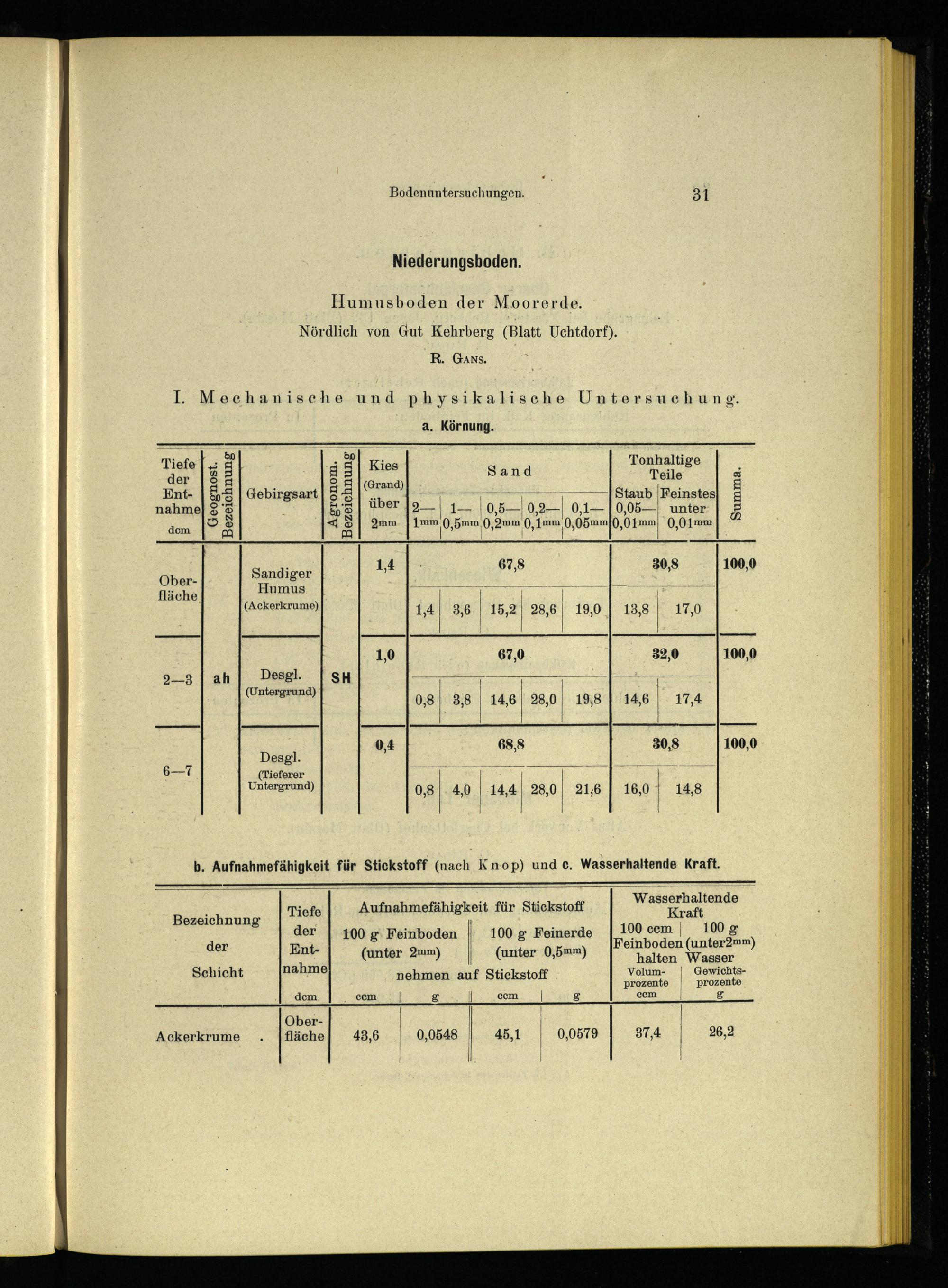 Miefe Aufnahmefähigkeit für Stickstoff WANN ende der| 100g‘ Feinboden 100g Feinerde| 100 ccm| 100 g der Ent-(unter Qmm)(unter 0,5mm) Feinboden(unter2mm)