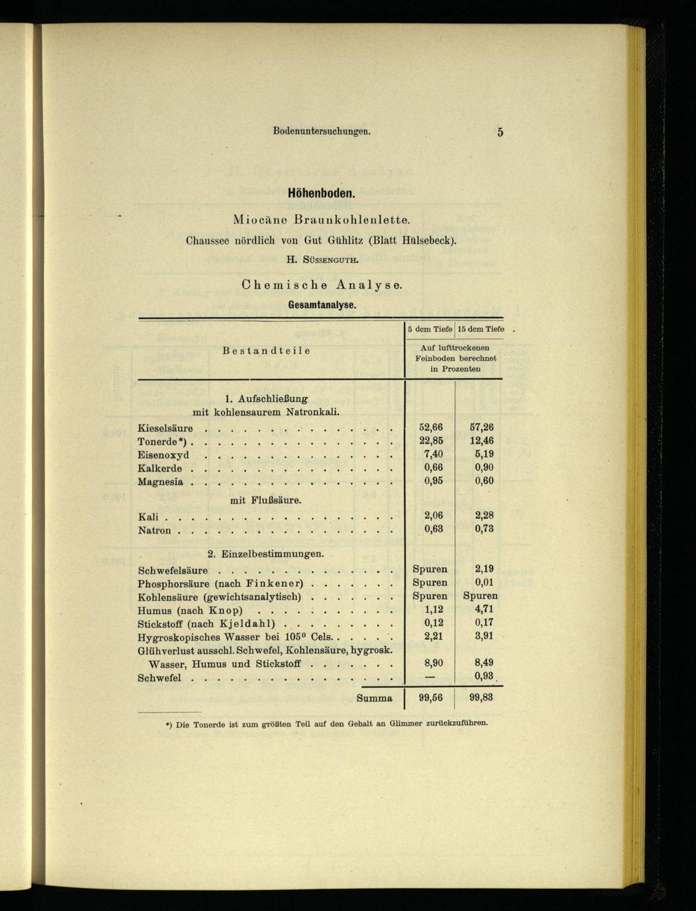 *) Die Tonerde ist zum größten Teil auf den Gehalt an Glimmer zurückzuführen.