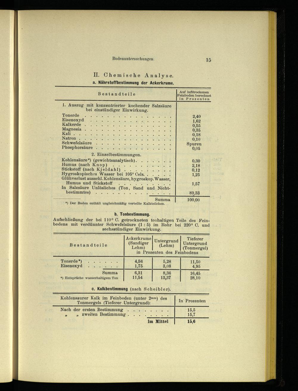 II. Chemische Analyse. a. NöhrStoffhestimmung der Ackerkrume.