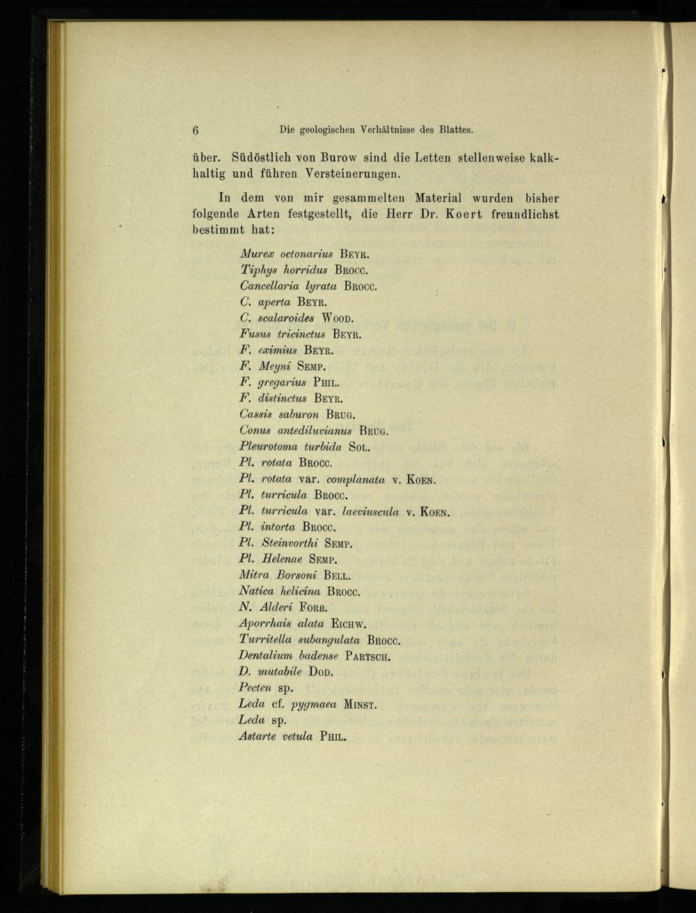 über. Südöstlich von Burow sind die Letten stellenweise kalkhaltig und führen Versteinerungen.