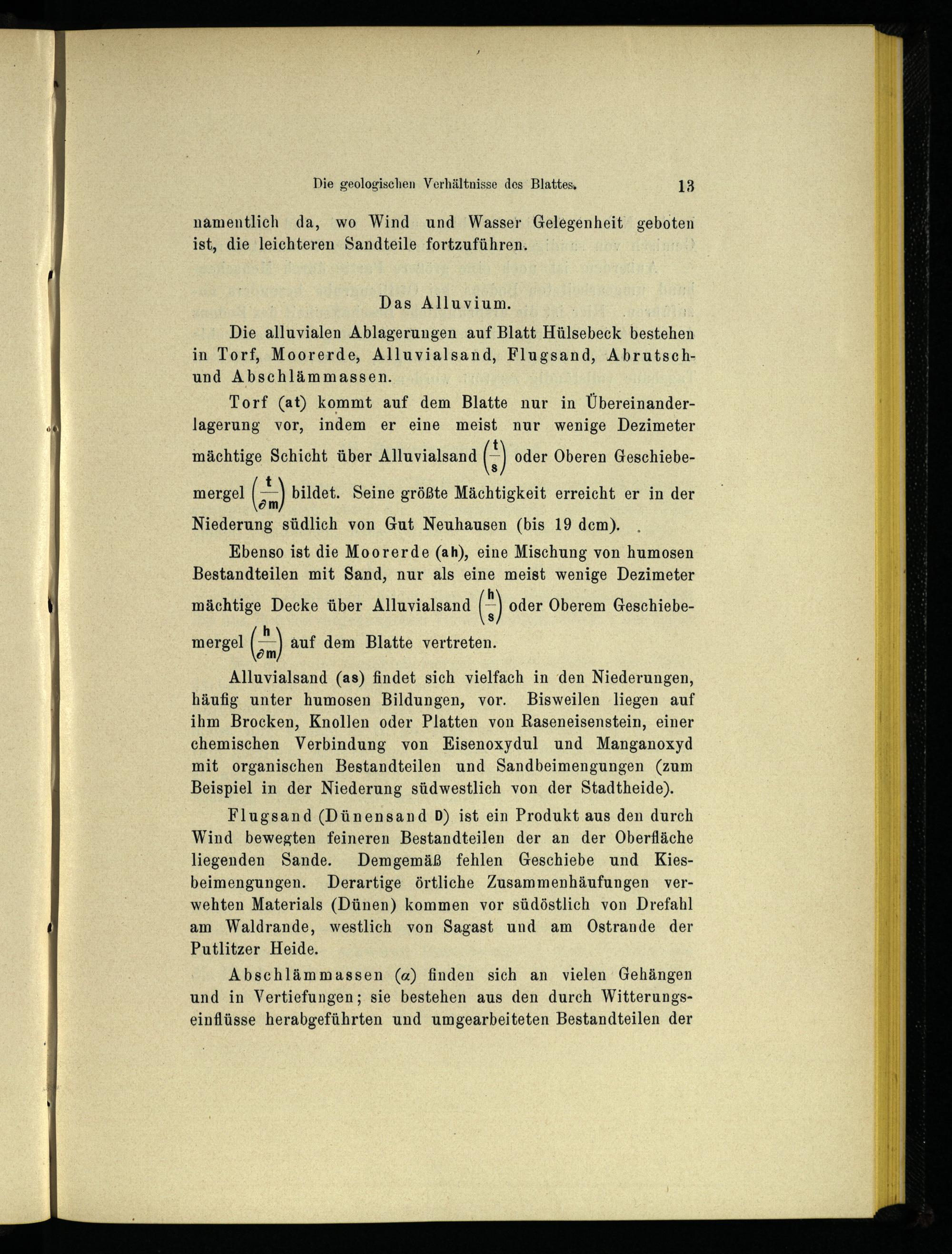 Torf(at) kommt auf dem Blatte nur in Übereinanderlagerung vor, indem er eine meist nur wenige Dezimeter